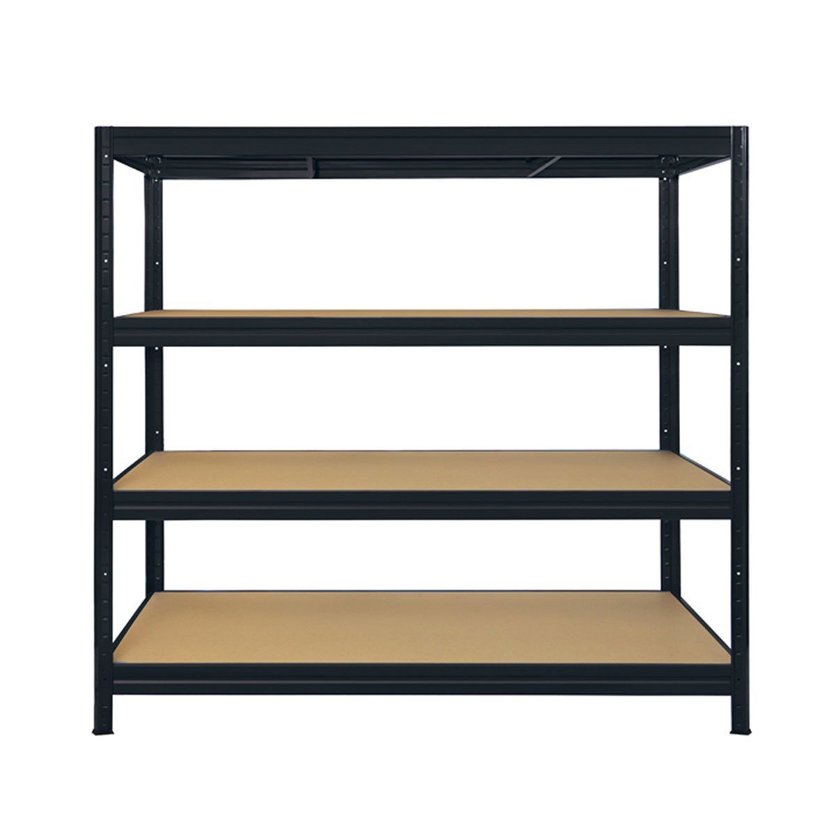 Das schwarze Weitspannregal begeistert durch einfache Montage und eine sehr hohe Traglast. Das Weitspannregal mit den 4 Spanplattenböden kann abhängig von der Regalgröße pro Boden mit einem Gewicht von 500 kg bzw. 600 kg belastet werden. Das entspricht einer Traglast von insgesamt 1200 kg bzw. 1500 kg.