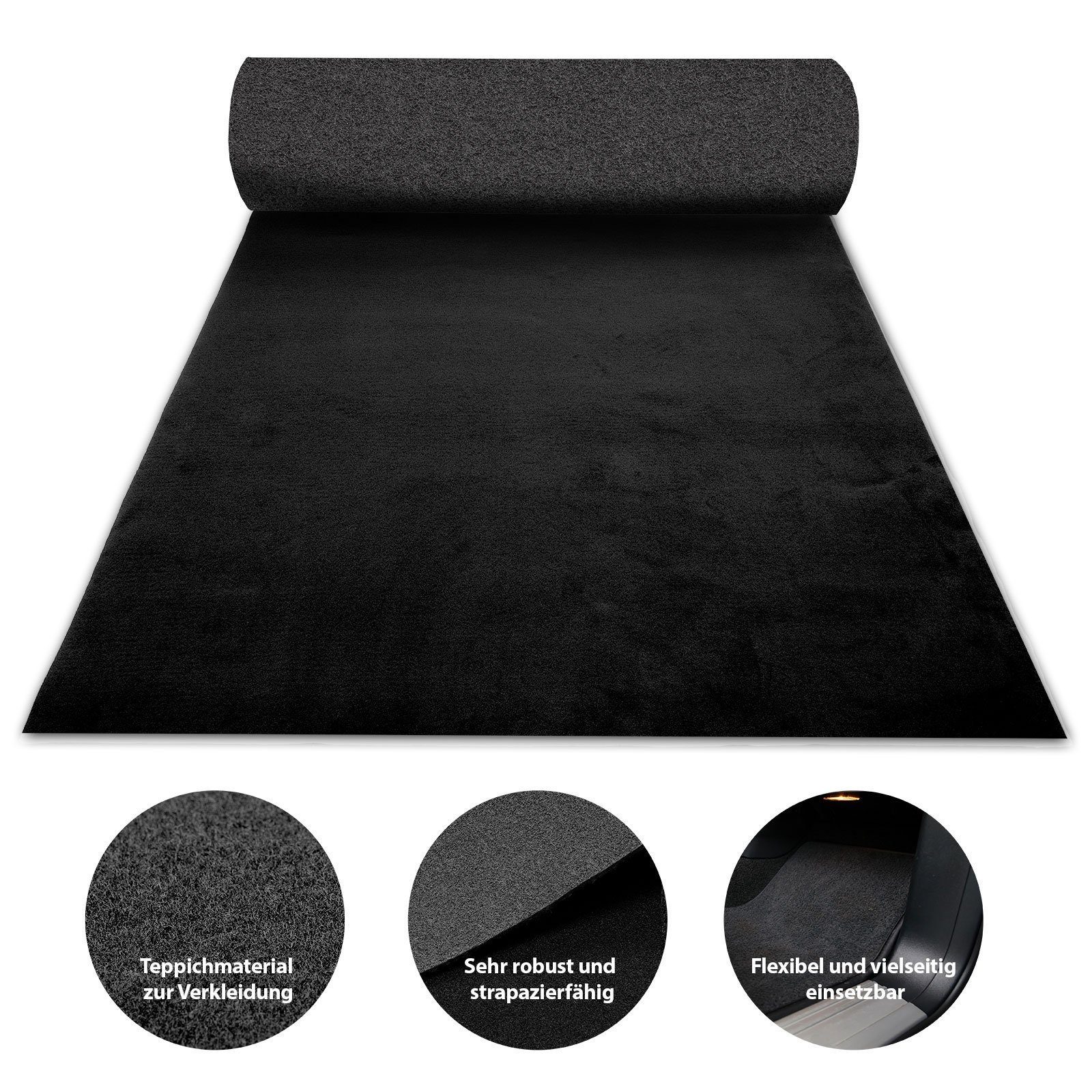 Die Teppichverkleidung eröffnet vielseitige Anwendungsmöglichkeiten im Kfz-Ausbau und bietet damit Raum für all Ihre Do-it-yourself Ideen. Mit einem Teppich- oder Cuttermesser ganz leicht individuell zuschneidbar, steht der Restaurierung von Oldtimern oder der Instandhaltung von Transporter, Campervan oder Bus nichts mehr im Wege.