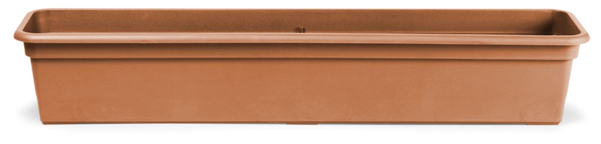 Unser klassischer, rechteckiger Balkonkasten in terracotta wird aus hochwertigem, UV- und wetterfestem Kunststoff gefertigt und ist für den Innen- und Außenbereich geeignet und lässt sich einfach mit einem feuchten Lappen reinigen, so dass er für viele Jahre schön bleibt und einen attraktiven Blickfang bietet. Ab einer Длина von 80 cm ist eine Querstrebe im Lieferumfang enthalten, die zur Wahrung der Form - selbst unter schwerer Erdlast - und einer ansprechenden Optik in die dafür vorgesehenen Löcher am oberen Rand eingesteckt werden kann. Um Staunässe zu vermeiden hat der Balkonkasten Löcher im Boden, daher bieten wir Ihnen für diesen Kasten auch einen passenden Untersetzer zum Schutz Ihrer Böden und Fensterbänke vor Verschmutzung und Wasserflecken an. Wir bieten Ihnen neben diesem Balkonkasten in terracotta weitere Kunststoffpflanzkästen in verschiedenen Farben und Größen mit Bewässerungsfunktionen an. Entdecken Sie ergänzend zu unserem beliebten Balkonkasten unsere runden Pflanztöpfe Cilindro oder unsere sich in Design und Farbe ergänzenden quadratischen Blumentöpfe "Salo", sowie die Pflanztröge und weitere Kästen zur Montage an Balkonbrüstungen oder als freistehende Pflanzbehältnisse. Dieses qualitativ hochwertige Produkt wird garantiert zu 100% aus RECYCELTEM KUNSTSTOFF in der EU gefertigt und leistet so einen wertvollen Beitrag zum Schutz der Umwelt! In folgenden Größen* können Sie den Balkonkasten bei uns erhalten: Breite 40 cm x Tiefe 17 cm x Höhe 14 cm, Fassungsvermögen 5,7 Liter Breite 60 cm x Tiefe 17 cm x Höhe 14 cm, Fassungsvermögen 9,0 Liter Breite 80 cm x Tiefe 17 cm x Höhe 14 cm, Fassungsvermögen 12,3 Liter *Die genannten Maße können produktionsbedingt geringfügig abweichen. Dekorationsartikel gehören nicht zum Lieferumfang.