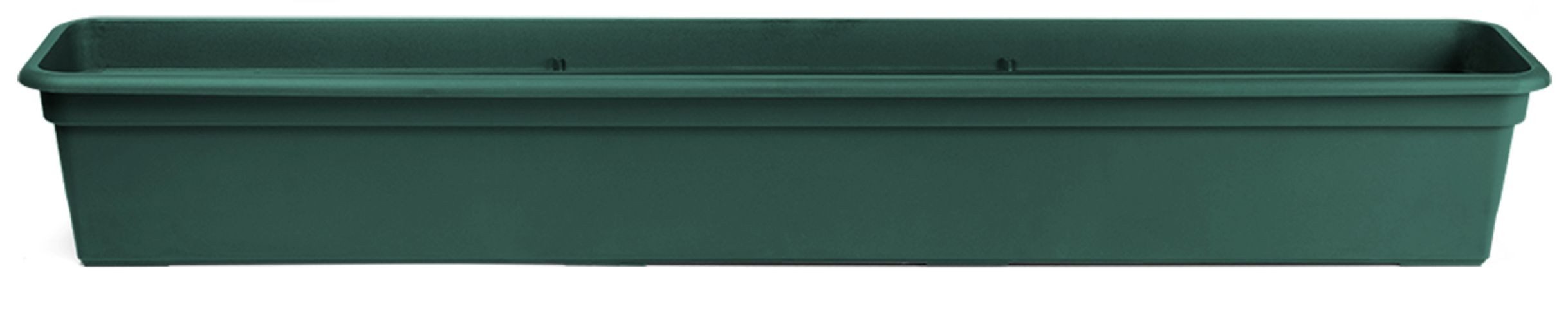 Unser klassischer, rechteckiger Balkonkasten in grün wird aus hochwertigem, UV- und wetterfestem Kunststoff gefertigt und ist für den Innen- und Außenbereich geeignet und lässt sich einfach mit einem feuchten Lappen reinigen, so dass er für viele Jahre schön bleibt und einen attraktiven Blickfang bietet. Ab einer Длина von 80 cm ist eine Querstrebe im Lieferumfang enthalten, die zur Wahrung der Form - selbst unter schwerer Erdlast - und einer ansprechenden Optik in die dafür vorgesehenen Löcher am oberen Rand eingesteckt werden kann. Um Staunässe zu vermeiden hat der Balkonkasten Löcher im Boden, daher bieten wir Ihnen für diesen Kasten auch einen passenden Untersetzer zum Schutz Ihrer Böden und Fensterbänke vor Verschmutzung und Wasserflecken an. Wir bieten Ihnen neben diesem Balkonkasten in grün weitere Kunststoffpflanzkästen in verschiedenen Farben und Größen mit Bewässerungsfunktionen an. Entdecken Sie ergänzend zu unserem beliebten Balkonkasten unsere runden Pflanztöpfe Cilindro oder unsere sich in Design und Farbe ergänzenden quadratischen Blumentöpfe "Salo", sowie die Pflanztröge und weitere Kästen zur Montage an Balkonbrüstungen oder als freistehende Pflanzbehältnisse. Dieses qualitativ hochwertige Produkt wird garantiert zu 100% aus RECYCELTEM KUNSTSTOFF in der EU gefertigt und leistet so einen wertvollen Beitrag zum Schutz der Umwelt! In folgenden Größen* können Sie den Balkonkasten bei uns erhalten: Breite 40 cm x Tiefe 17 cm x Höhe 14 cm, Fassungsvermögen 5,7 Liter Breite 60 cm x Tiefe 17 cm x Höhe 14 cm, Fassungsvermögen 9,0 Liter Breite 80 cm x Tiefe 17 cm x Höhe 14 cm, Fassungsvermögen 12,3 Liter *Die genannten Maße können produktionsbedingt geringfügig abweichen. Dekorationsartikel gehören nicht zum Lieferumfang.