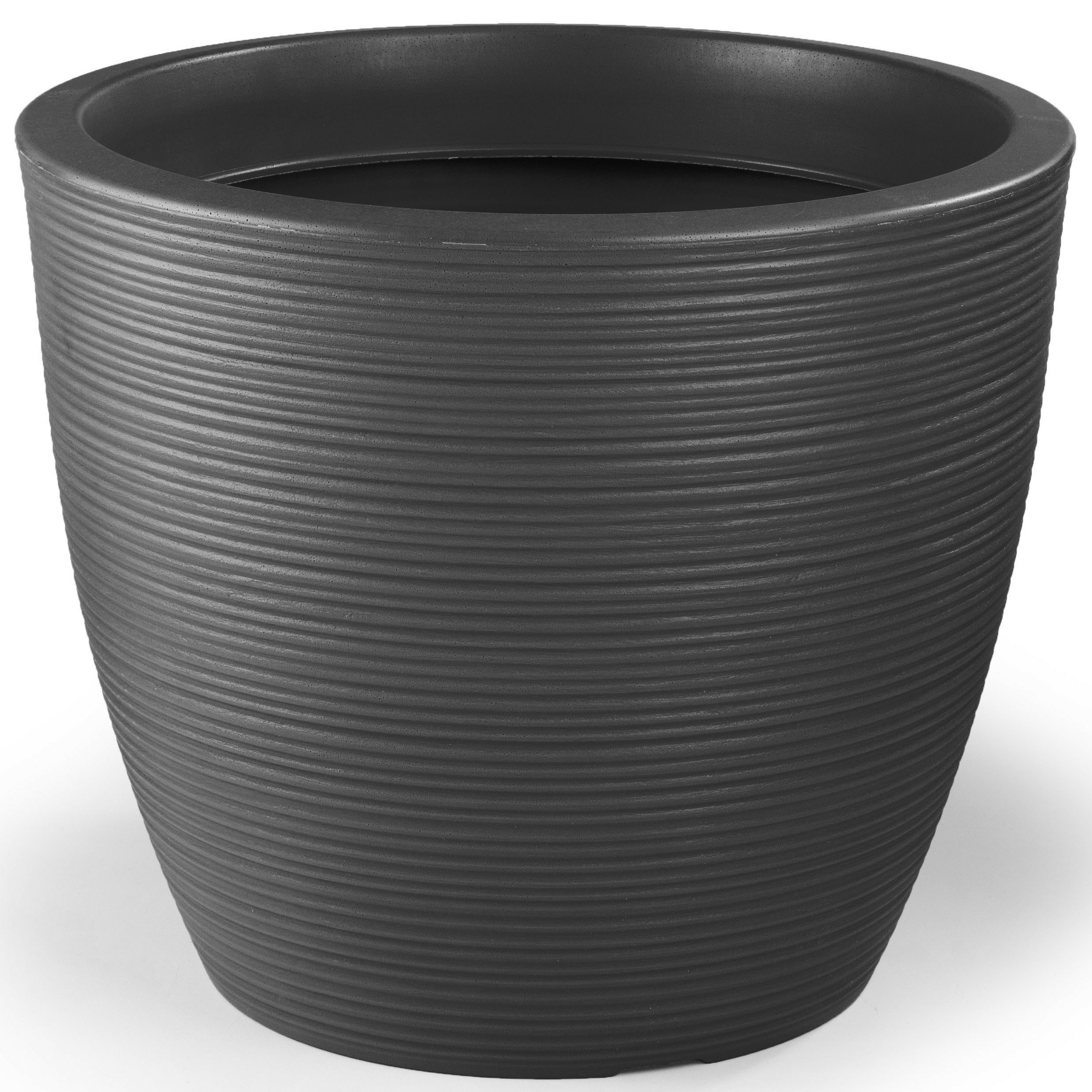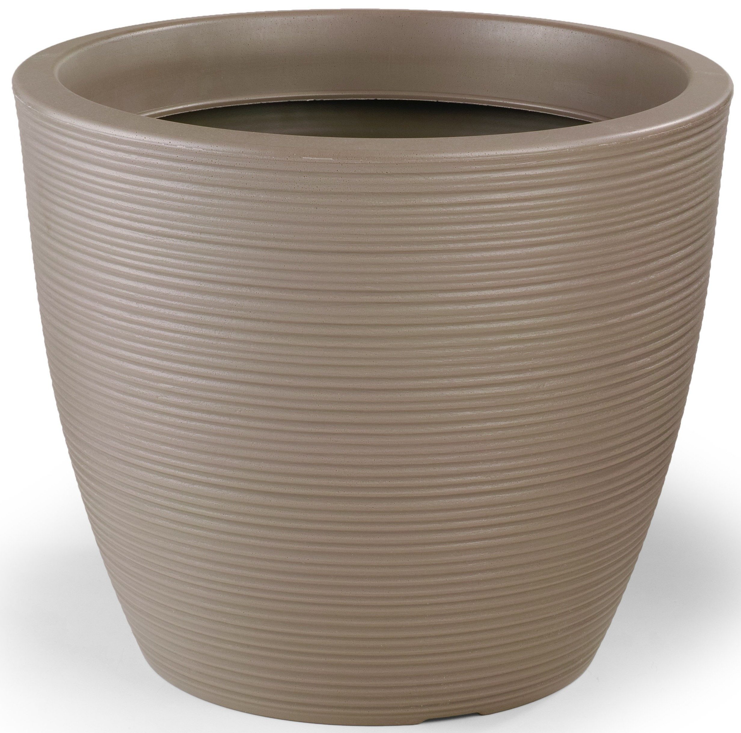 Sie können diesen Kunststofftopf in drei angesagten Farben und fünf Größen bei uns erhalten. Es handelt sich um einen qualitativ äußerst hochwertigen Kunststoffpflanztopf, der durch seine rotierende Herstellungsweise sehr robust und nicht nur wetterfest, sondern auch frostsicher ist und daher das ganze Jahr über im Freien stehen kann. Der Topf bietet ein ansprechendes, klassisches Design mit einem gleichmäßigen Rillenmuster und dient Ihnen langfristig als dekorativer Blickfang im Außen- oder Innenbereich. Dieses Modell hat keine Löcher im Boden. Bei Bedarf können aber leicht Löcher mit einer haushaltsüblichen Bohrmaschine in den Topfboden hineingebohrt werden. Für den Fall bieten wir Ihnen auch die passenden Untersetzer zu diesem Topf an. Die Pflanztöpfe "Scana" werden mit bis zu 50 % Kunststoffanteil aus wiederverwerteten Materialien hergestellt und leisten damit einen wertvollen Beitrag zum Schutz unserer Umwelt! In diesen Größen können Sie den Blumentopf bei uns erhalten: ø 33 cm x 27,6 cm hoch, Fassungsvermögen 15 Liter - zu dieser Размер empfehlen wir Ihnen unseren Untersetzer "Terni" mit ø 35 cm ø 38 cm x 32 cm hoch, Fassungsvermögen 22 Liter - zu dieser Размер empfehlen wir Ihnen unseren Untersetzer "Terni" mit ø 38 cm ø 43 cm x 36 cm hoch, Fassungsvermögen 33 Liter - zu dieser Размер empfehlen wir Ihnen unseren Untersetzer "Terni" mit ø 43 cm ø 48 cm x 40,1 cm hoch, Fassungsvermögen 46 Liter - zu dieser Размер empfehlen wir Ihnen unseren Untersetzer "Terni" mit ø 47 cm ø 58 cm x 48,7 cm hoch, Fassungsvermögen 94 Liter - zu dieser Размер empfehlen wir Ihnen unseren Untersetzer "Terni" mit ø 55 cm Bitte beachten Sie die genauen Abmessungen in unseren Produktbildern.