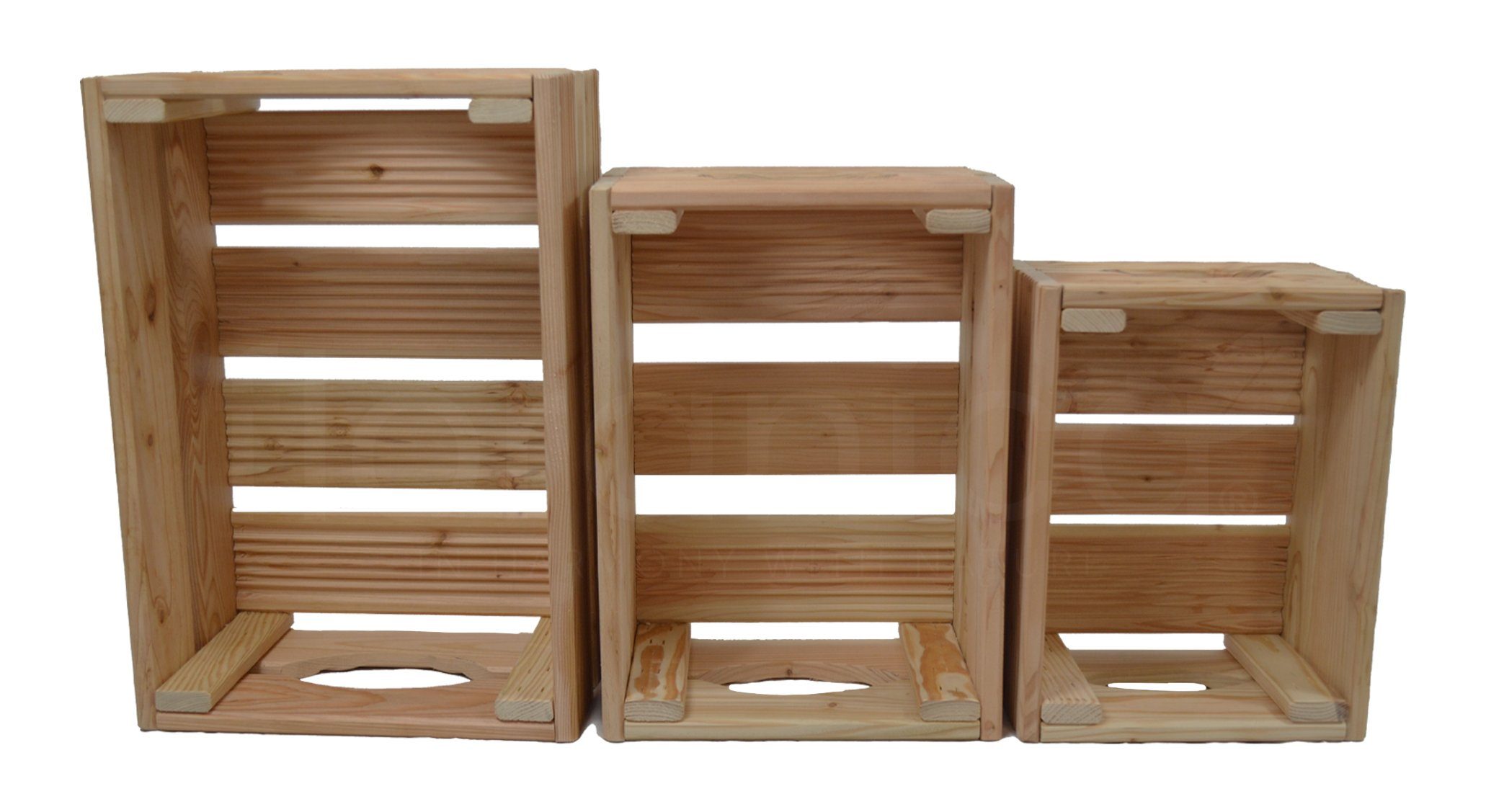 Mit etwas handwerklichem Geschick können Sie aus unseren Holzkisten ein modisches DIY Holzkastenregal bauen. Stapeln Sie einfach unsere Allzweckkisten übereinander, und Sie erhalten ein praktisches Regal für Bücher und Ordner im Büro, einen Schuhschrank im Flur oder einen wunderschönen Raumteiler. Die dekorative Form lässt sich auch schnell an der Wand als Regal anbringen und kann beispielsweise in der Küche als ästhetischer Aufbewahrungsort verwendet werden.