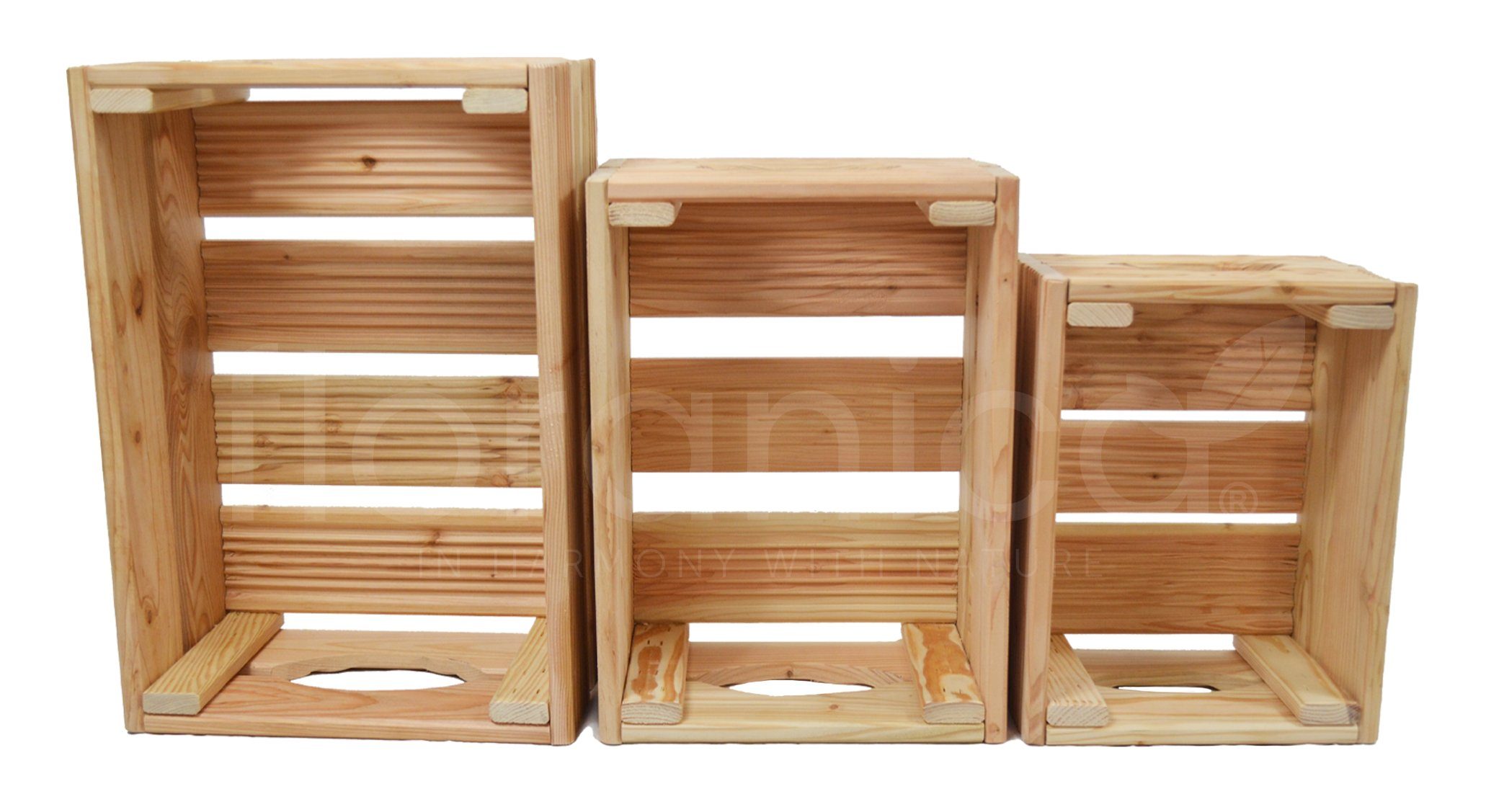 Unsere Holzkisten lassen sich im Handumdrehen in rustikale Nachttische oder Beistelltische verwandeln. Verwenden Sie alle Kisten in unserem 3er-Set und kreieren Sie einen trendigen Couchtisch im Industriestil. Wählen Sie eine unbehandelte Version, entscheiden Sie sich für Pastellfarben und kreieren Sie die perfekte Spielzeugkiste oder ein Kinderzimmerregal im Montessoristil für Ihr Kind.