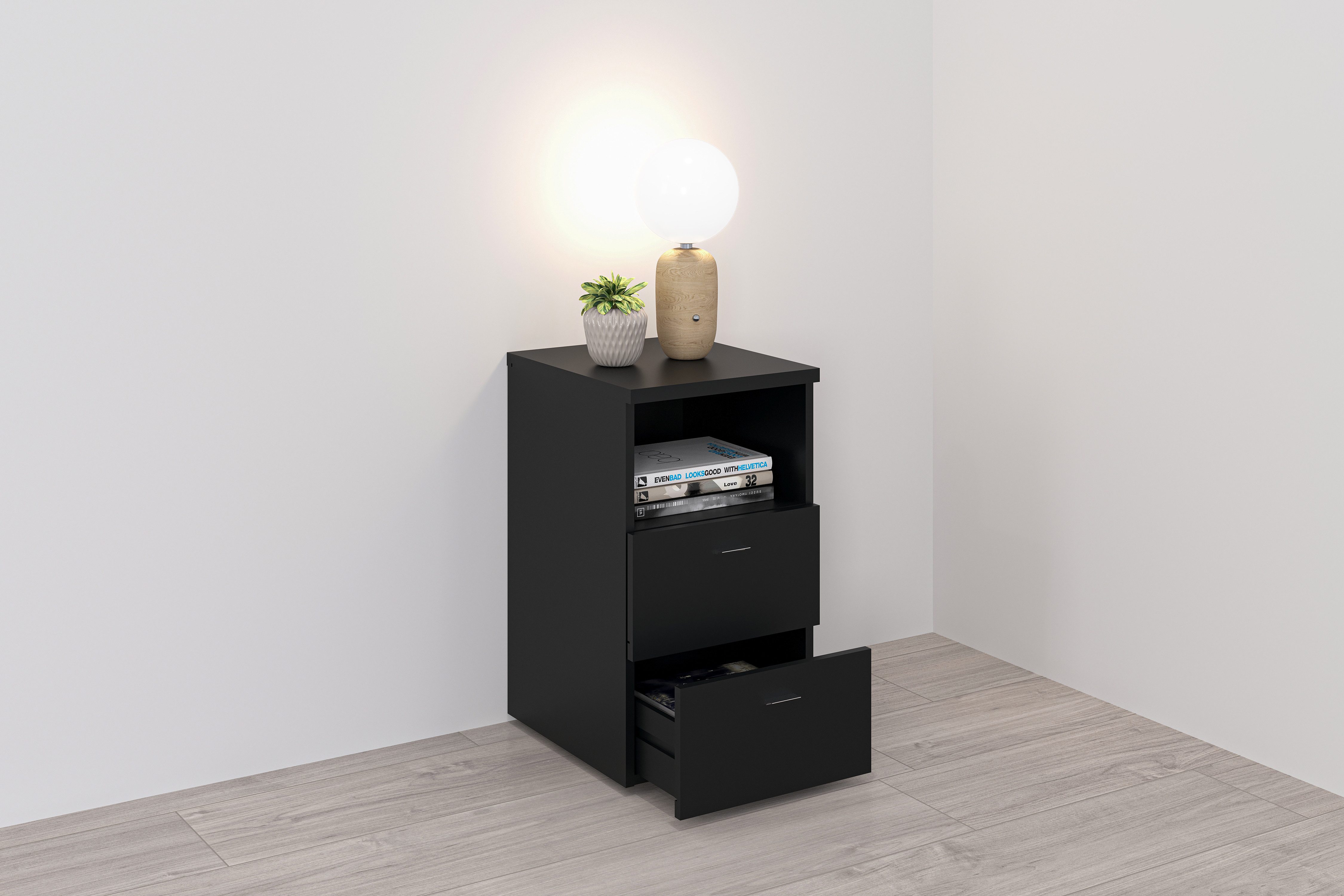 Wissenswertes | Füße (schwarz) und Griffe (silberfarben) aus Kunststoff Made in Germany Schubkästen auf Metalllaufleisten |