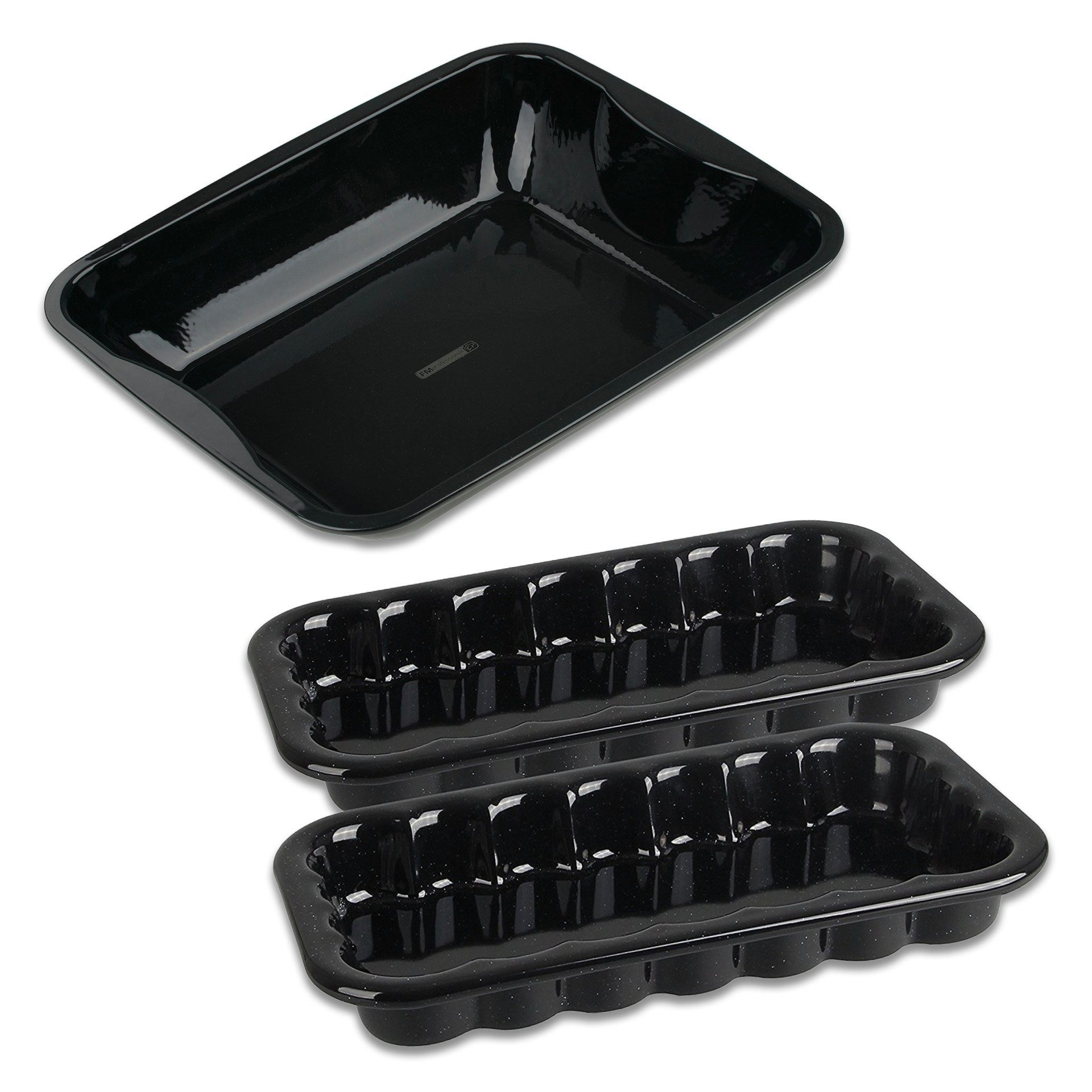 Das FMprofessional XXL Bräter und Grillschalen Set ist ein unverzichtbares Küchenwerkzeug für jeden, der gerne kocht und Wert auf Qualität und Funktionalität legt. Hergestellt aus hochwertiger Emaille, bietet es eine außerordentliche Widerstandsfähigkeit gegen hohe Temperaturen bis zu 400°C sowie gegen Schnitte und Säure, was es zu einem langlebigen Begleiter in deiner Küche macht.