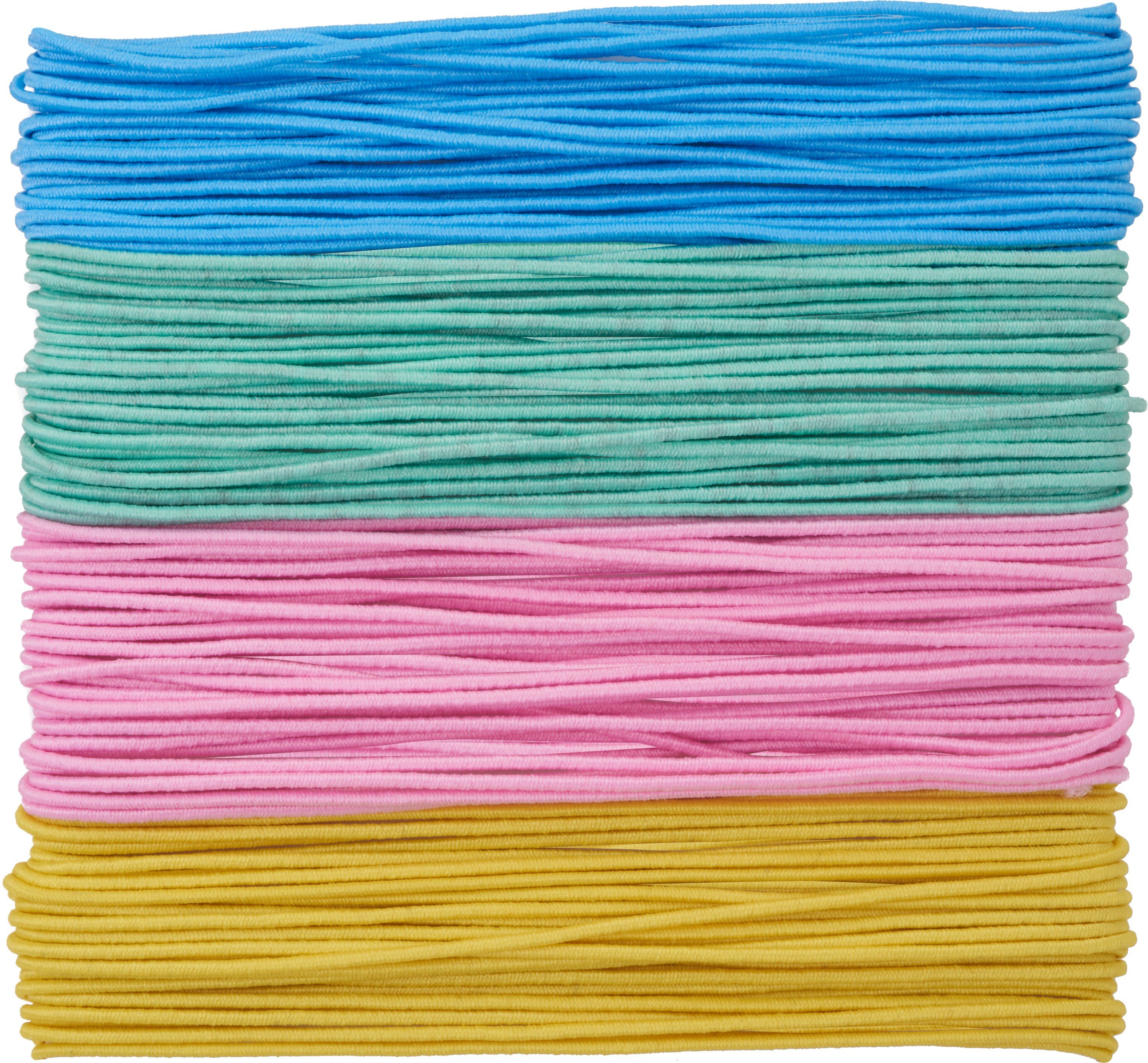 Schöne Gummischnüre 'Pastell' als 4er-Set. Die Gummischnüre haben eine Длина von je ca. 5 m. Klasse für die Schmuckgestaltung oder zum Auffädeln von kleinen Anhängern, Streuteilen oder Perlen, um damit Karten, Scrapbook-Projekte oder Geschenkverpackungen zu verzieren und aufzupeppen.