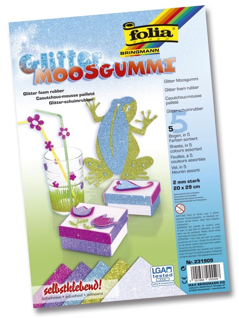 Folia Moosgummi Moosgummi Glitter - 20 x 29 cm, selbstklebend, 5 Farben sortiert