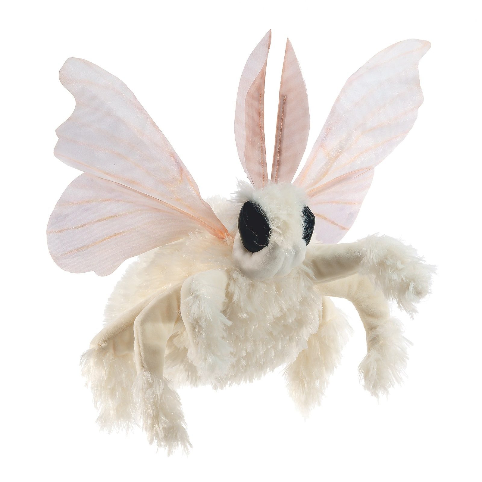 Mit der Folkmanis Handpuppe „Pudelmotte“ hältst du eines der geheimnisvollsten und gleichzeitig charmantesten Insekten der Welt in deinen Händen. Ihr weicher, samtiger Plüschkörper, die großen, schwarzen Augen und die organzaähnlichen Flügel machen sie zu einer faszinierenden Erscheinung. Besonders auffällig: die flauschige Oberfläche und die markanten Antennen, die Kinder wie Erwachsene gleichermaßen begeistern.