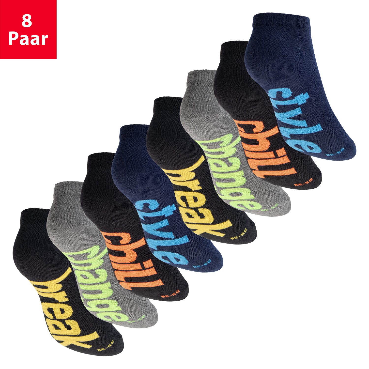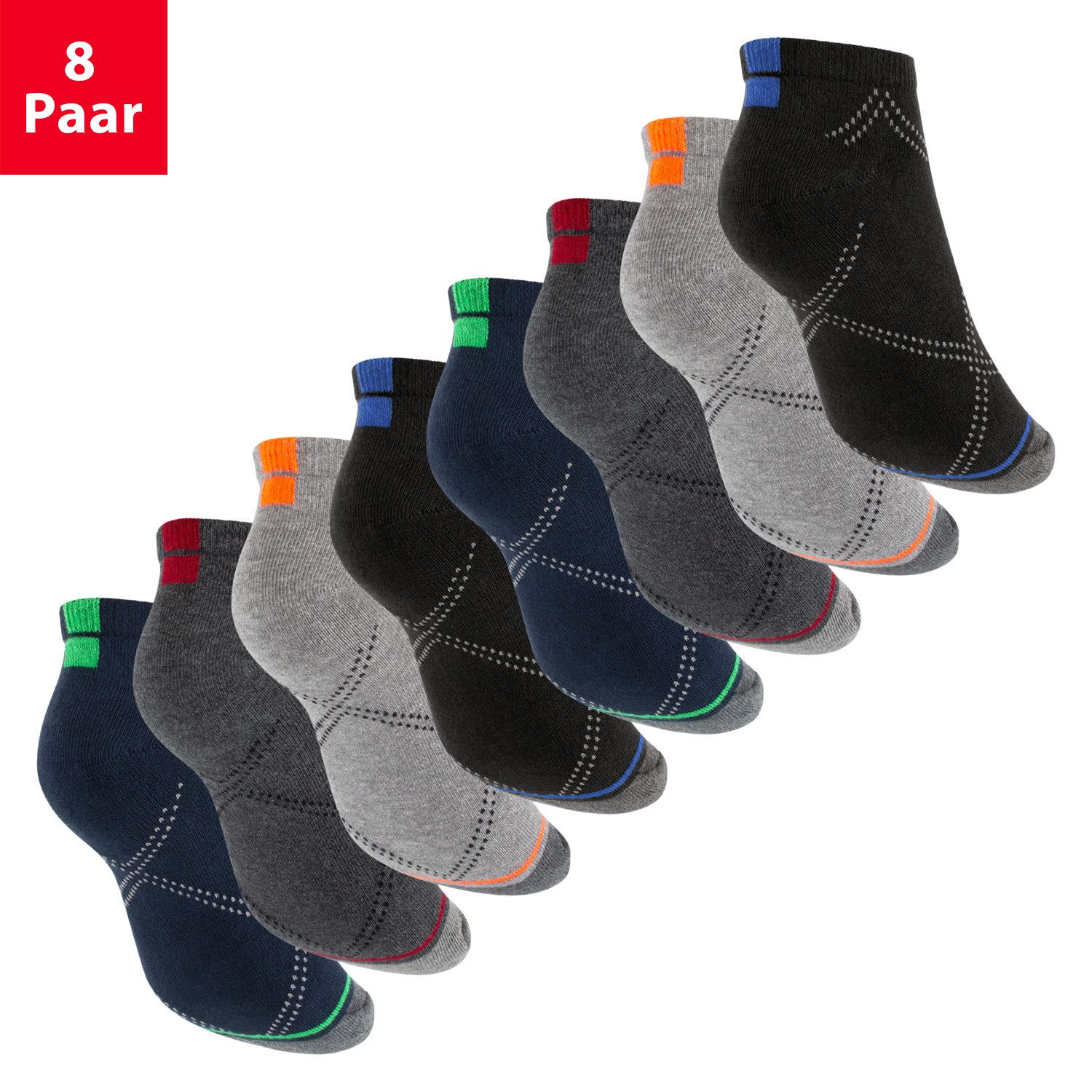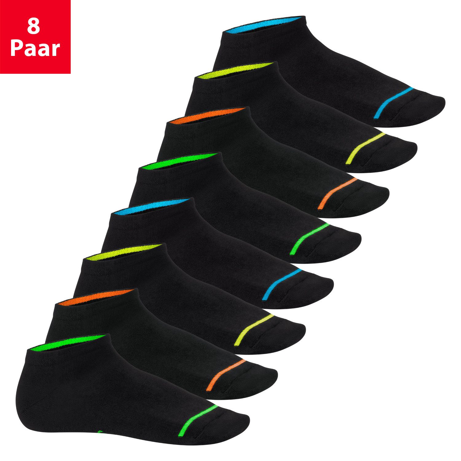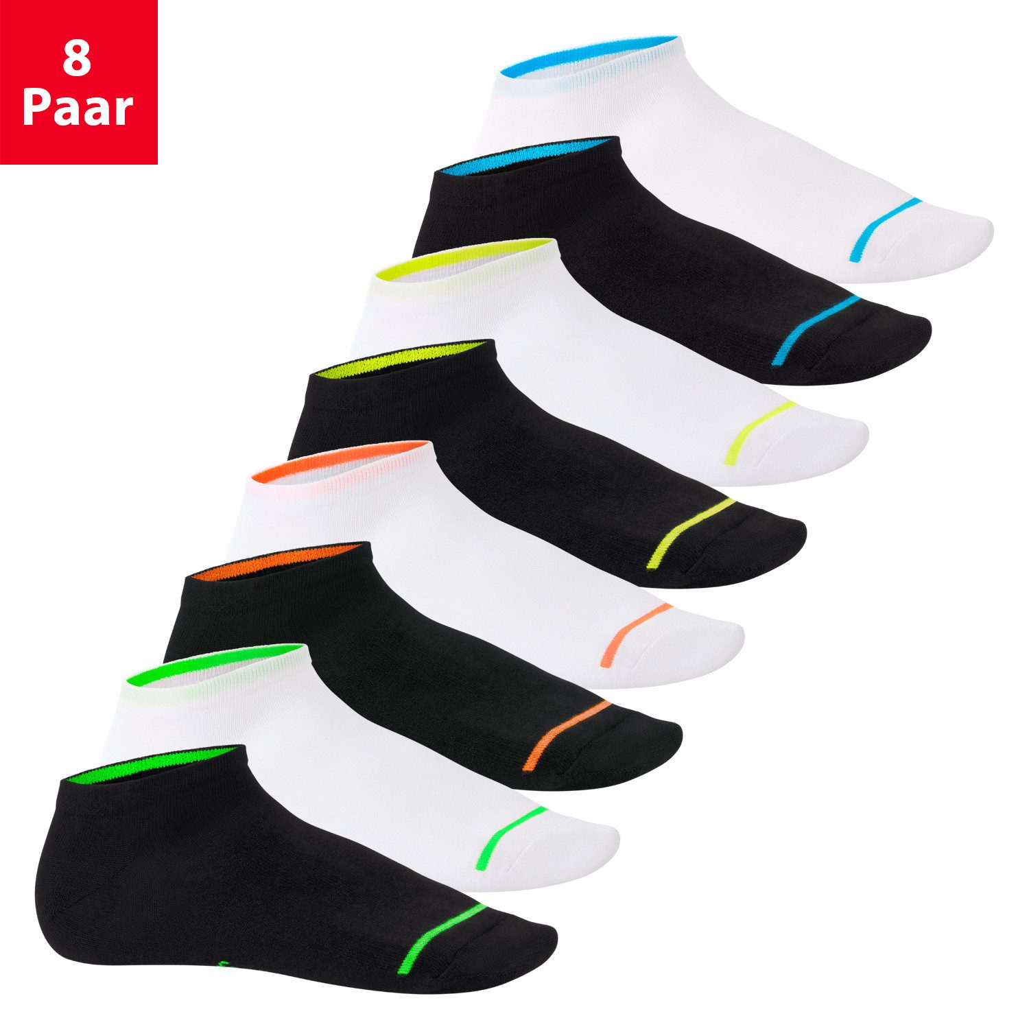 - 8er Pack Unisex Sneaker Socken mit Details im Neon-Look
