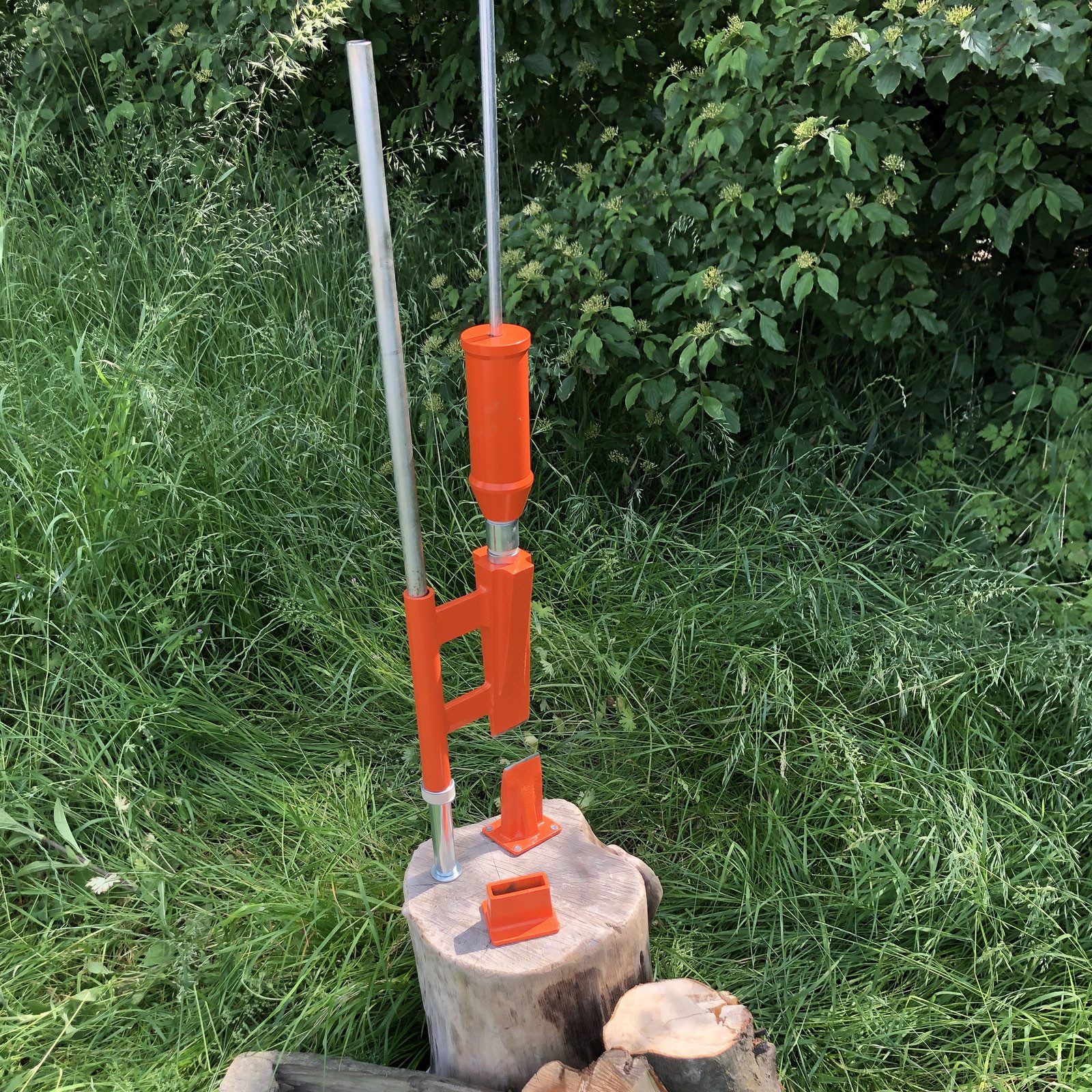 Manuell betriebener Holzspalter mit hoher Spaltkraft und zusätzlichen Spalt-Keil. Der Spalter ist schnell auf einen Baumstumpf oder Holzblock montiert und sofort einsatzbereit. Der Holz-Spalter arbeitet rein mechanisch über ein Fallgewicht und ist dadurch überall einsetzbar