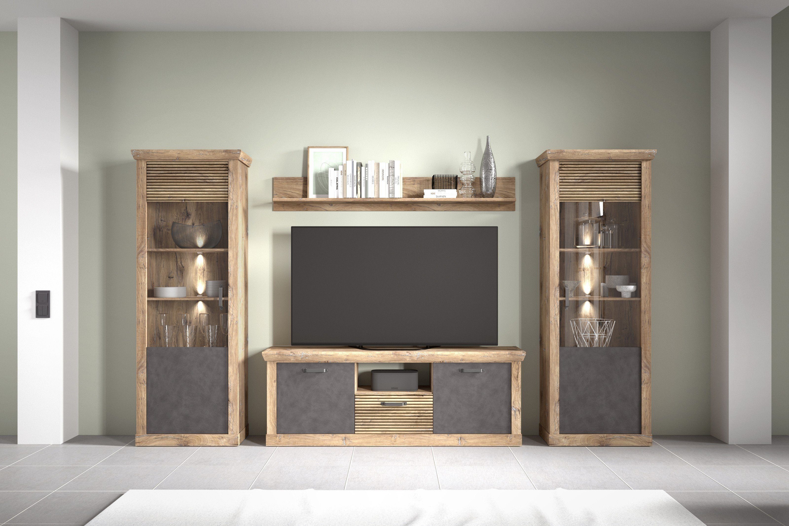 Farbe | Dekor Lamellen Flagstaff Eiche/Anthrazit |