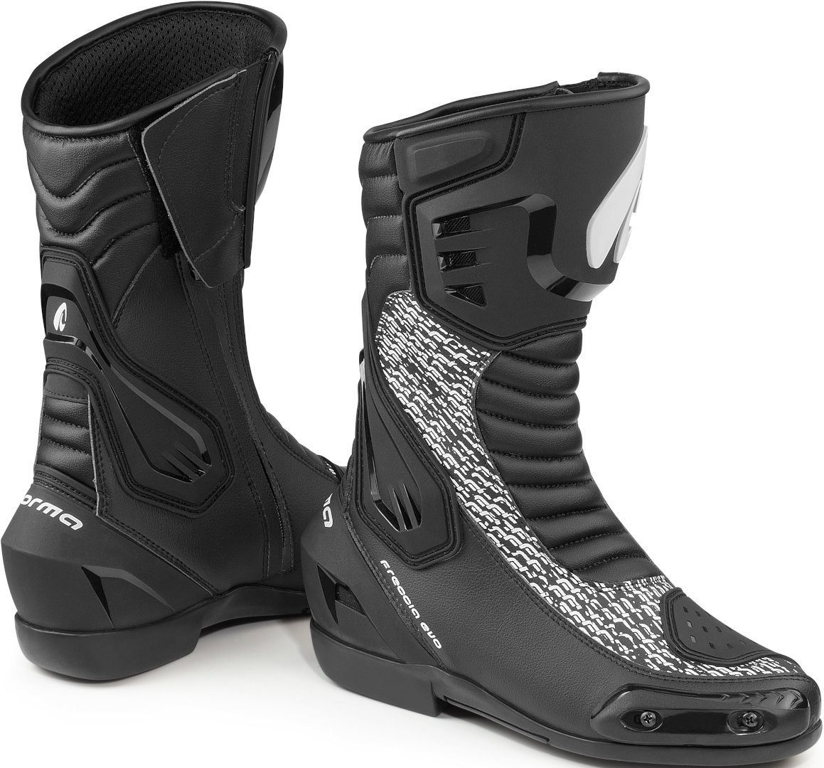 Der Forma Freccia Evo Motorradstiefel bietet ein aggressives, stilvolles Design und setzt die Tradition des beliebten Freccia-Modells fort. Er kombiniert Komfort, Schutz und Leistung für den Einsatz auf und abseits der Rennstrecke. Der Freccia Evo ist für Fahrer konzipiert, die hohe Ansprüche an ihre Ausrüstung stellen, ohne Kompromisse bei der Sicherheit und Bequemlichkeit einzugehen. Mit seiner Standardpassform und Racing-Eigenschaften bietet er den perfekten Schutz für Motorradfahrer.