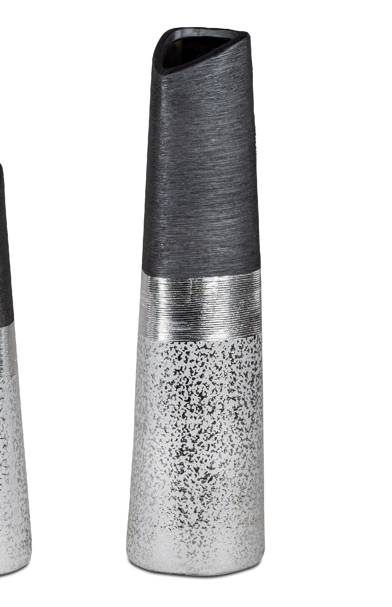 • Lieferumfang: 1 Deko Vase LUXOR konisch rund H. 40cm silber grau aus Keramik mit matt-gebürsteter Oberfläche und Relief, Boden mit Filz-Sticker