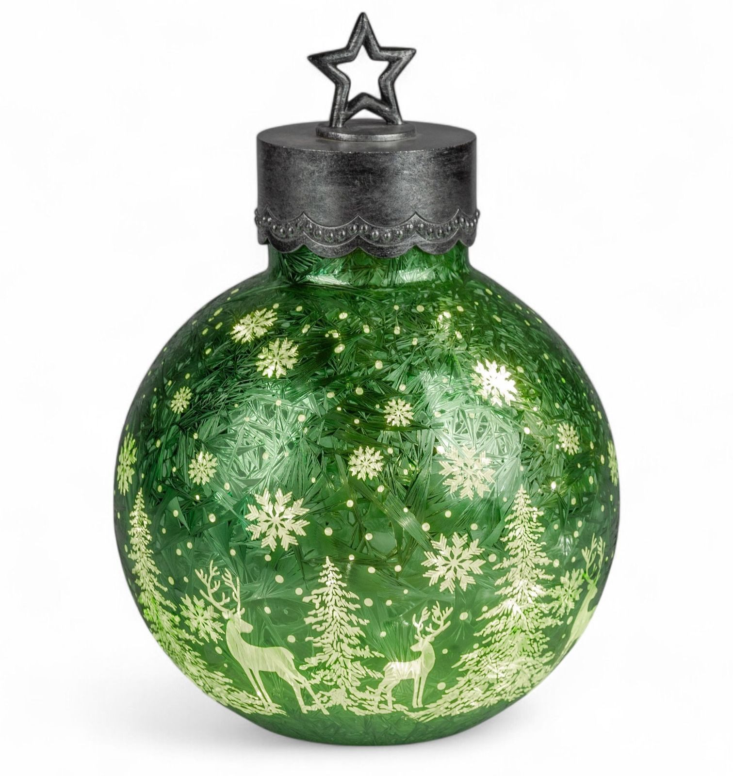 Diese hochwertige LED-Deko-Kugel von formano verleiht Ihrem Zuhause in Herbst und Winter eine warme, gemütliche Atmosphäre. Die elegante Deko-Kugel Frosty-Grün in Ice-Optik mit winterlichem Motiv setzt stilvolle Akzente – ob als herbstliche Tischdeko, stimmungsvolle Winterbeleuchtung oder festliche Weihnachtsdekoration.