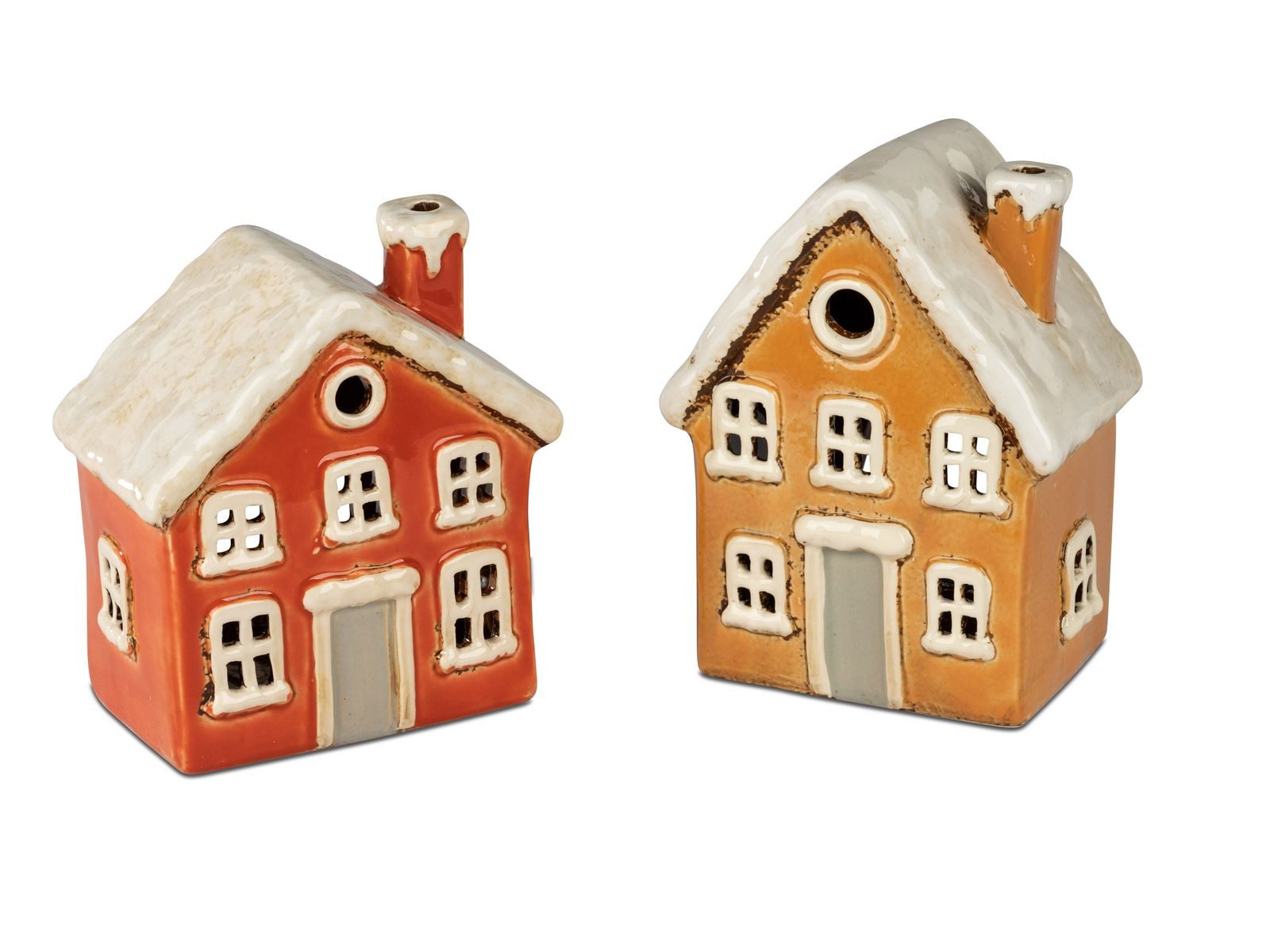 Mit dem handbemalten Windlicht-Set zieht pure Gemütlichkeit bei dir ein. Die beiden Keramikhäuser mit ihrem liebevoll gestalteten Schneedach und den glasierten Fenstern erinnern an verschneite Winterdörfer und wecken nostalgische Gefühle.