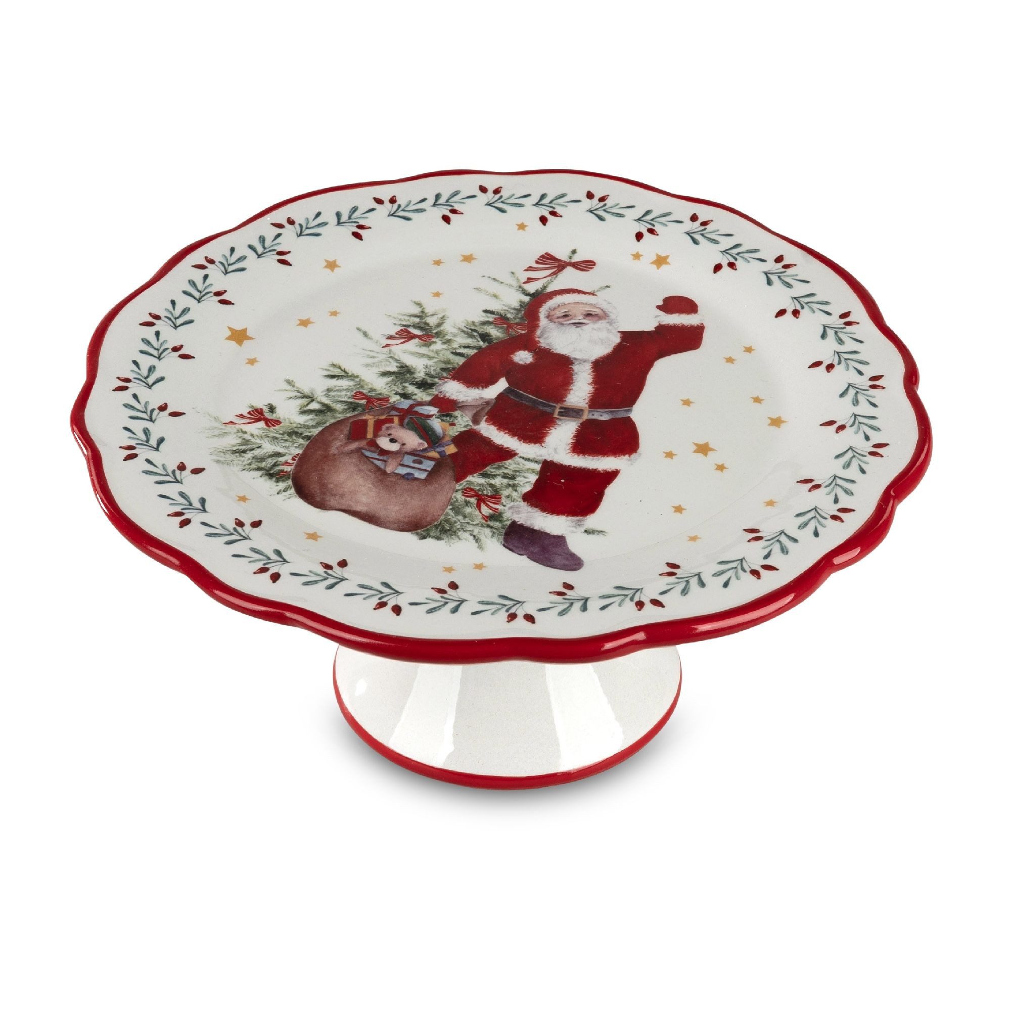 Lieferumfang: 1 Tortenplatte auf Fuß / Waffelteller NOSTALGIE D. 22cm weiß mit Weihnachtsmann Dekor aus glasiertem Steingut mit Lithografie-Dekor verziert Maße: Höhe 9cm, Durchmesser 22cm Farbe: weiß rot, mehrfarig Material: Steingut Lieferung erfolgt ohne etwaige Dekoration