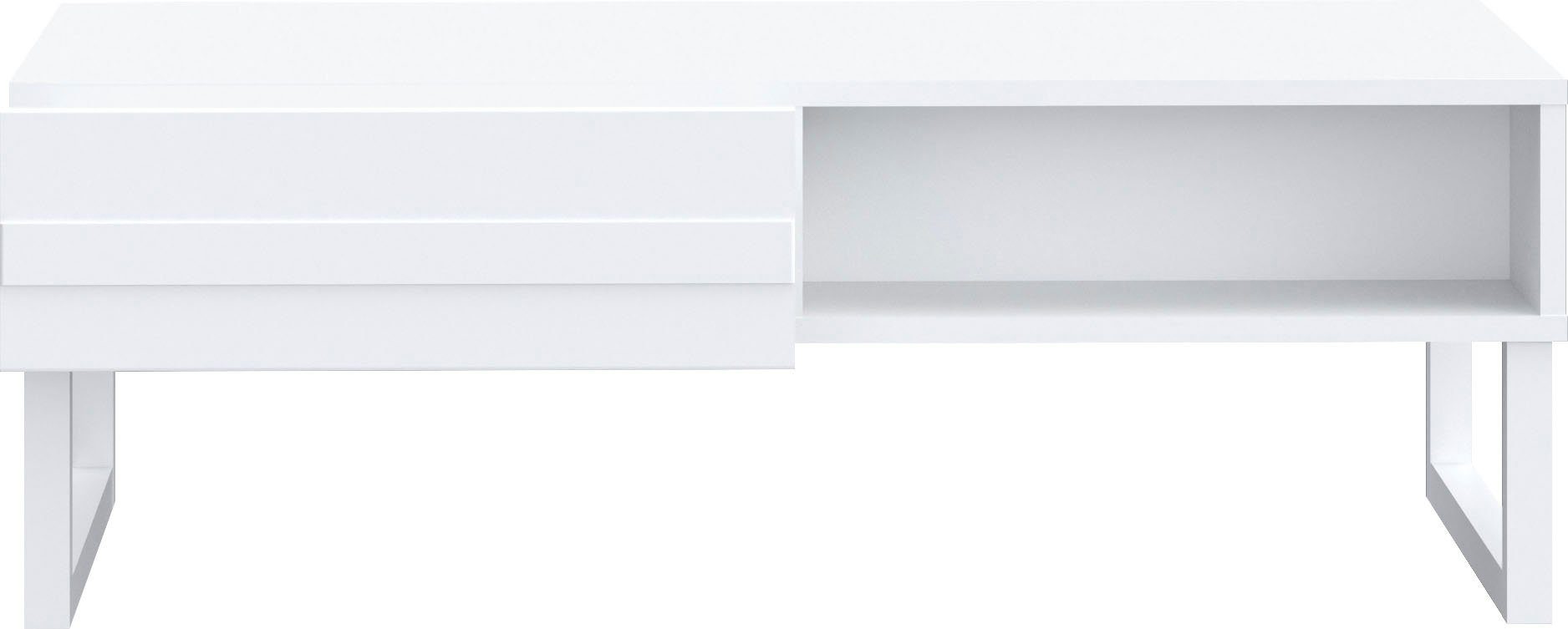 Dieser Couchtisch »Bretania« von FORTE hat eine Schublade für zusätzlichen Stauraum. Die matte Oberfläche der Tischplatte ist schlicht und zurückhaltend. Belastbar ist dein neues Möbelstück mit bis zu 40 Kilogramm. Die Spanplatte überzeugt mit ihrer langlebigen und verzugfreien Eigenschaft. Das Produkt wurde in Polen gefertigt. Wenn der Tisch mal Flecken abbekommt, kannst du ihn mit einem trockenen Tuch abwischen.