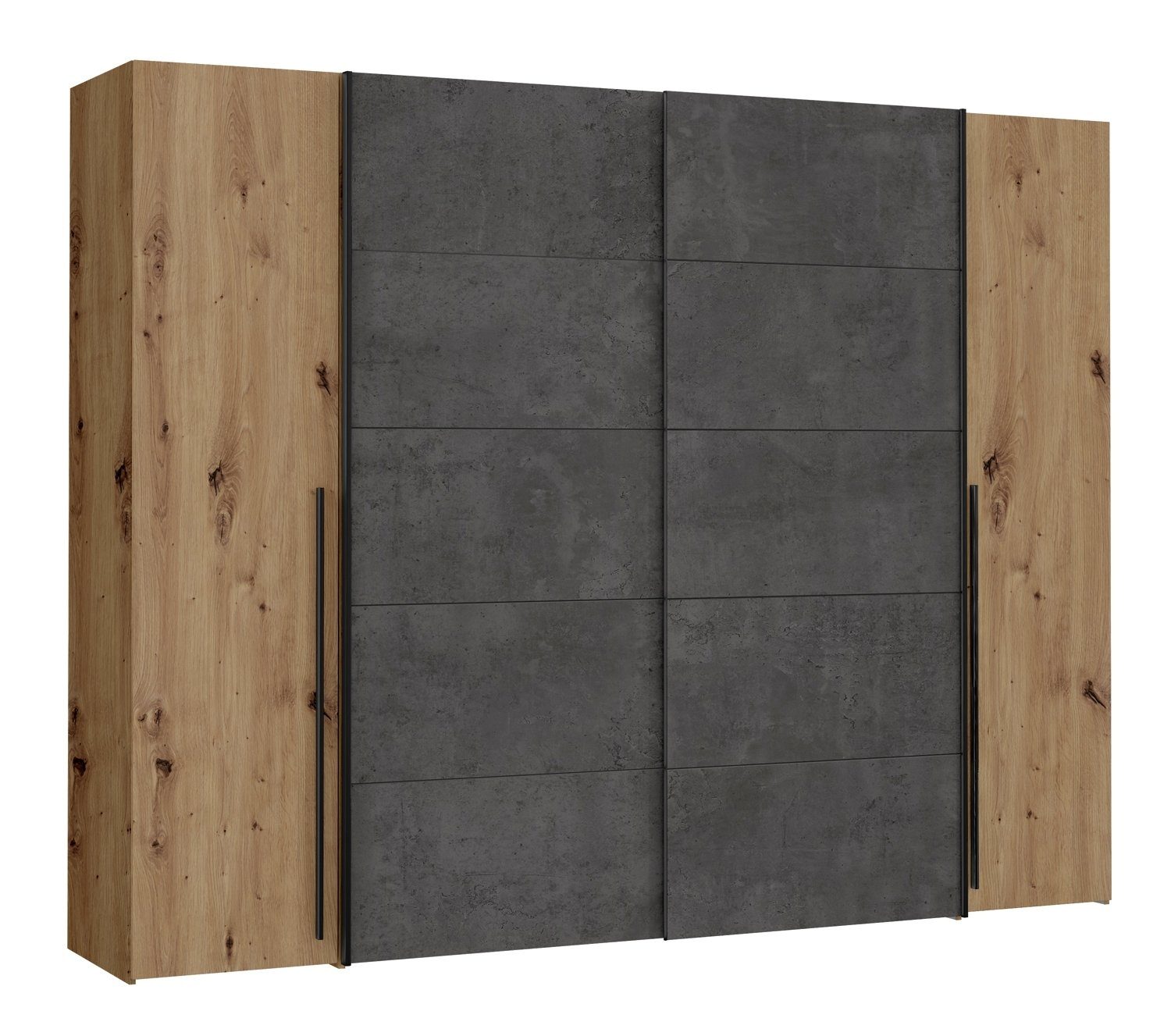 Lieferumfang | 1 Kleiderschrank mit 2 Drehtüren, 2 Schwebetüren, 2 Kleiderstangen, 10 Einlegeböden und Wechselbauchbinde |