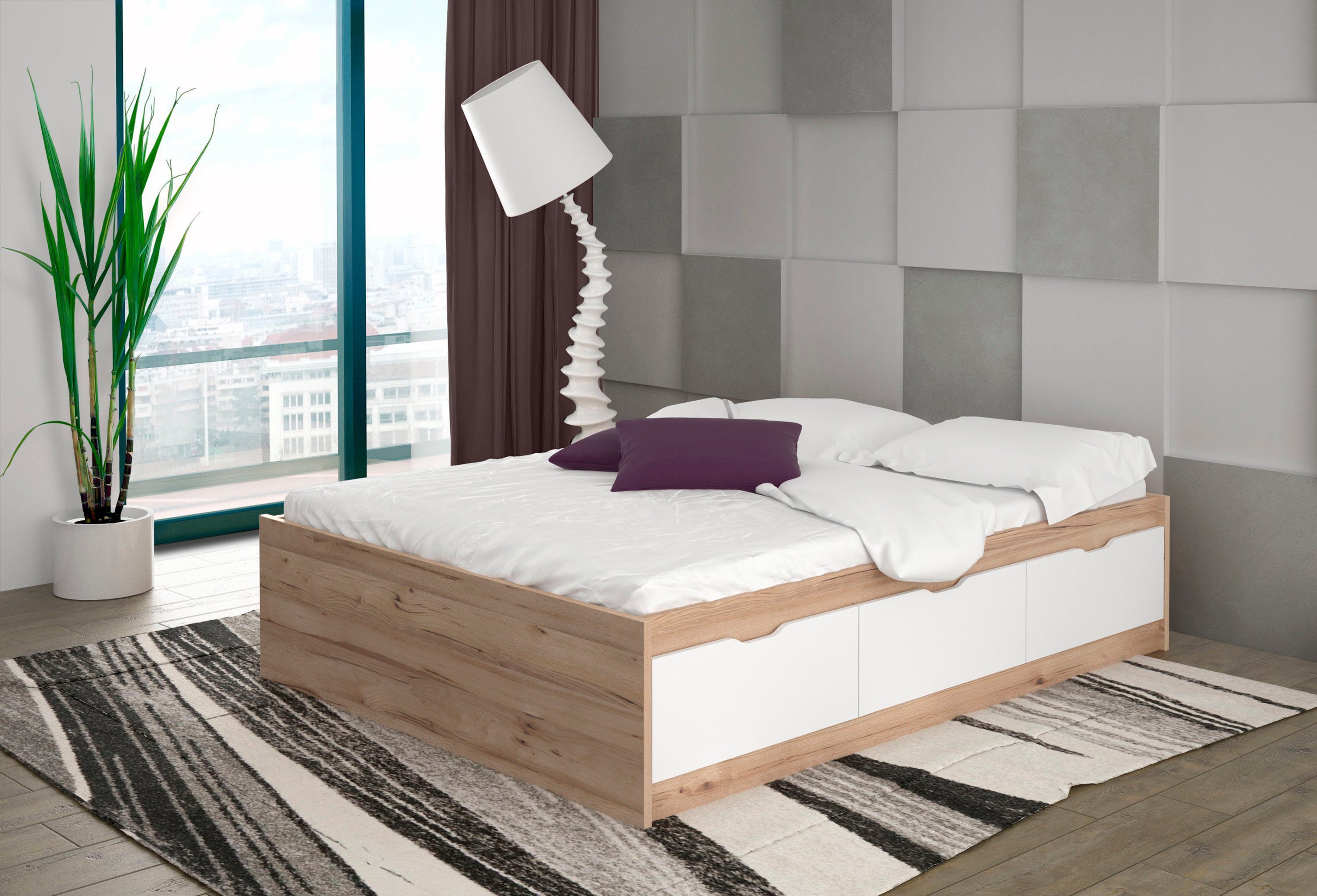 Dieses Stauraumbett »Vankka, viel Stauraum, skandinavisches Design« von FORTE verfügt über Schubladen. So kannst du den Platz unter der Liegefläche optimal als Stauraum für Bettwäsche, Tagesdecken und Dekokissen nutzen. Das Kopfteil ist 42,5 cm hoch.