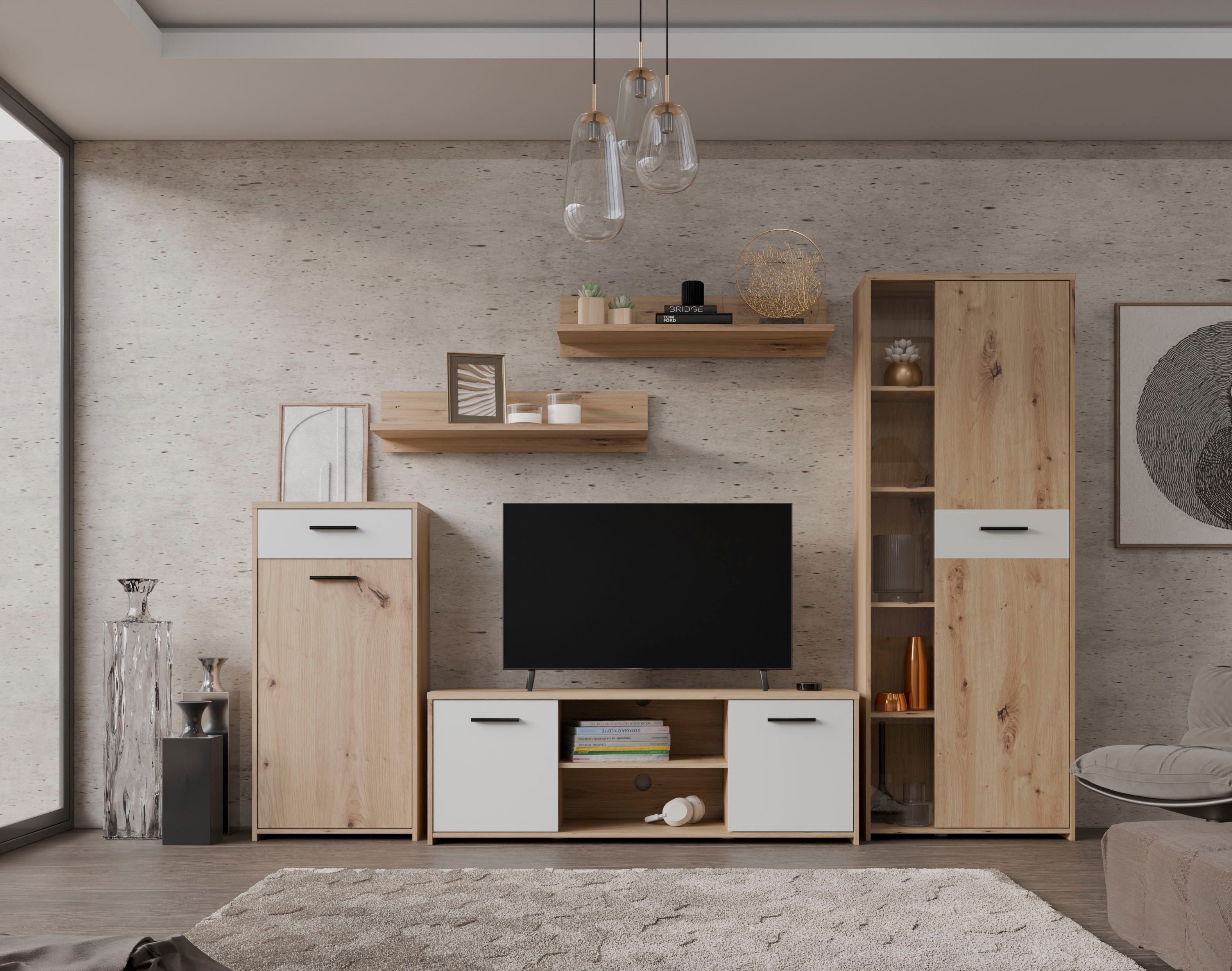 Set beinhaltet | 2x Wandregal, Vitrine, TV-Unterschrank, Kommode |