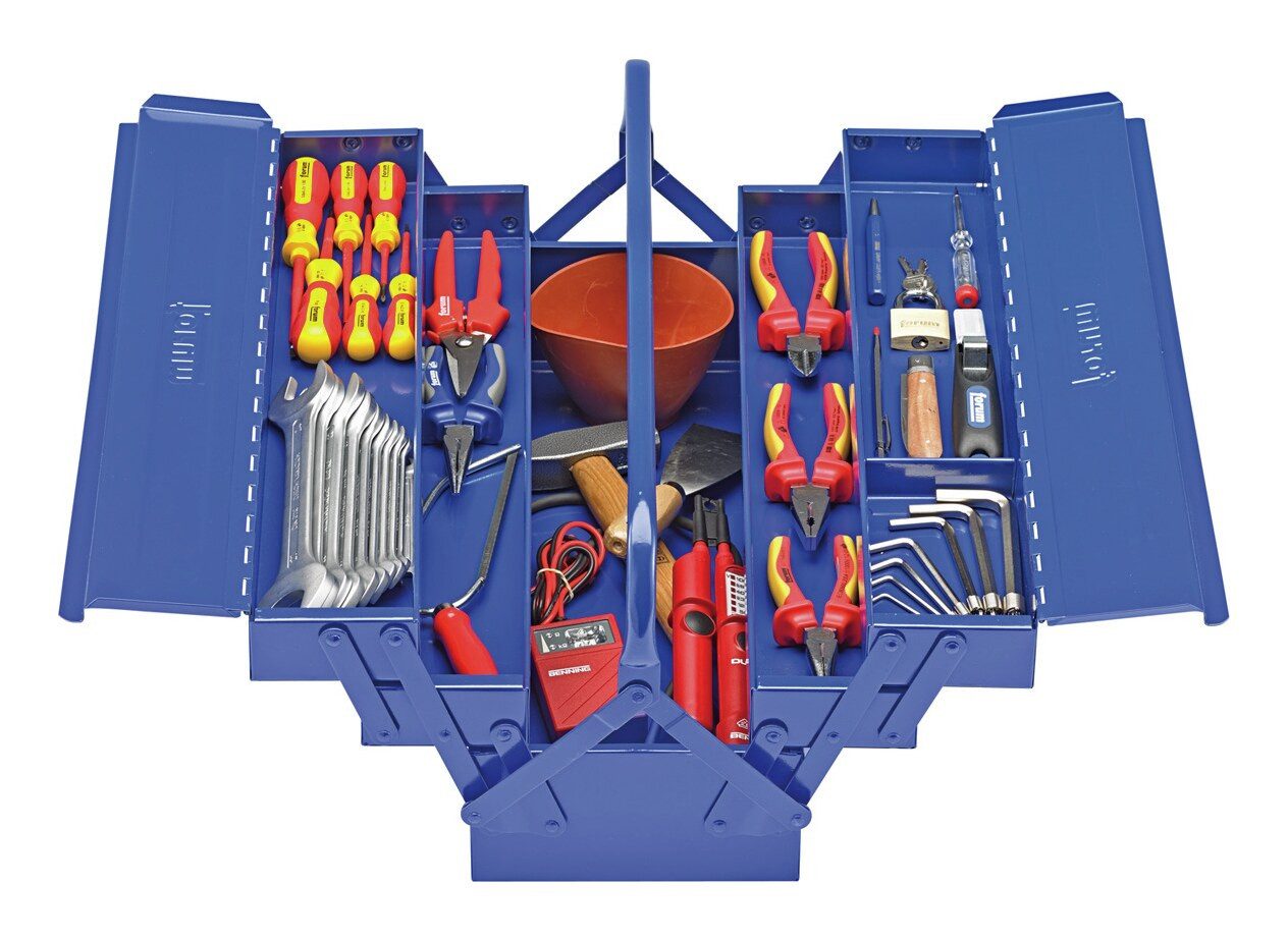 Lieferumfang | Im Stahlblech-Werkzeugkasten. |