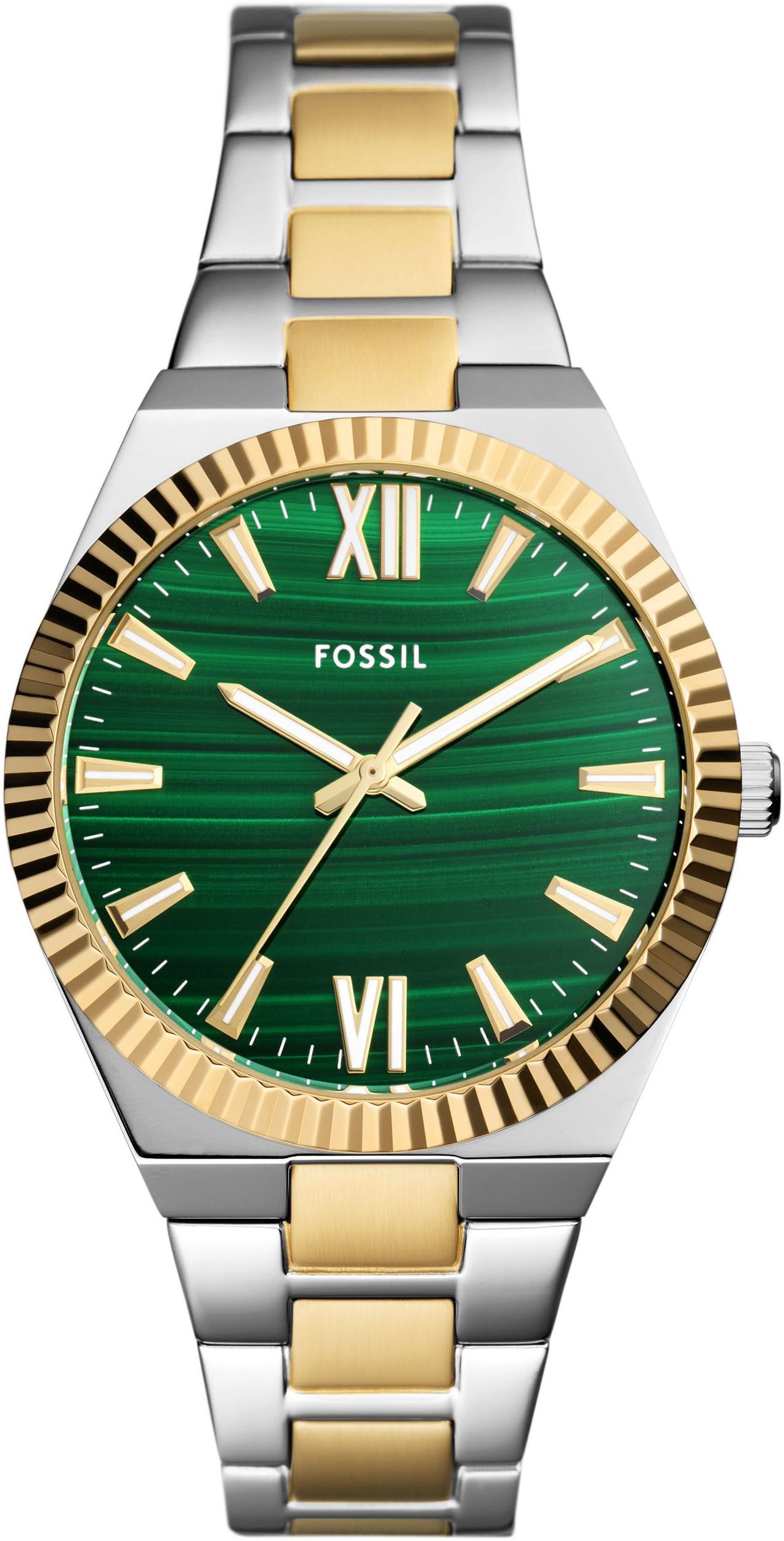 Bei Fossil trifft das Beste aus der Vergangenheit auf das Beste aus der Gegenwart. Das amerikanische Label ist bekannt für seinen einmaligen Sinn für Fashion und Fun, innovative Designs und ein top Preis-Leistungs-Verhältnis. Ein sportlich-eleganter Klassiker ist diese Damenuhr mit Edelstahl-Gehäuse an einem unkomplizierten Edelstahl-Band. An das silberne Gehäuse der Fossil Scarlette schließt sich ein Armband in Bicolor an, das silberne Ziffernblatt vollendet das Farb-Design. Die runde Form des Gehäuses mit einem Durchmesser von 38 Millimetern überzeugt auf ganzer Linie - egal, ob du ein eher schmales oder ein kräftigeres Handgelenk hast. Ein Quarzwerk garantiert höchste Präzision. Schön und praktisch: Die Scarlette zeigt neben der Uhrzeit auch das Datum an. Die Mineralglas-Abdeckung der Uhr ist klar und widerstandsfähig – genau das Richtige für den normalen, täglichen Gebrauch. Dank einer Wasserdichte von bis zu 5 Bar kann dieser Zeitmesser problemlos beim Händewaschen und Baden am Handgelenk bleiben. Durch die Klappschließe lässt sich das Armband leicht anlegen und sicher verschließen. Kurz gesagt: Die Fossil Scarlette Damenuhr ist ein Statement für guten Geschmack - und ein zuverlässiger Begleiter im Alltag.