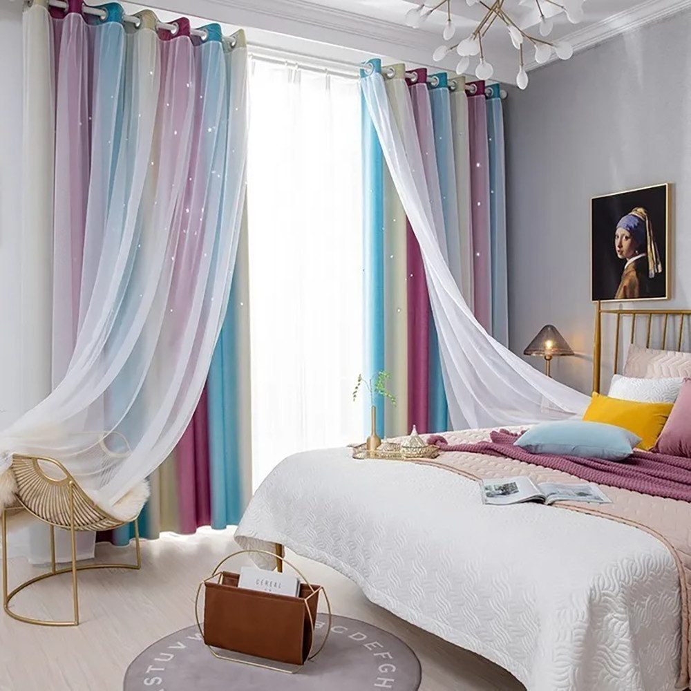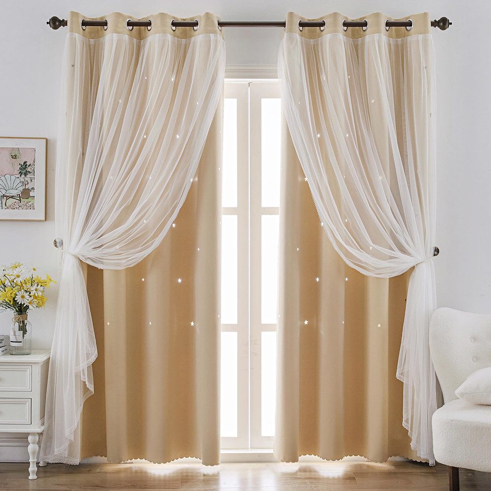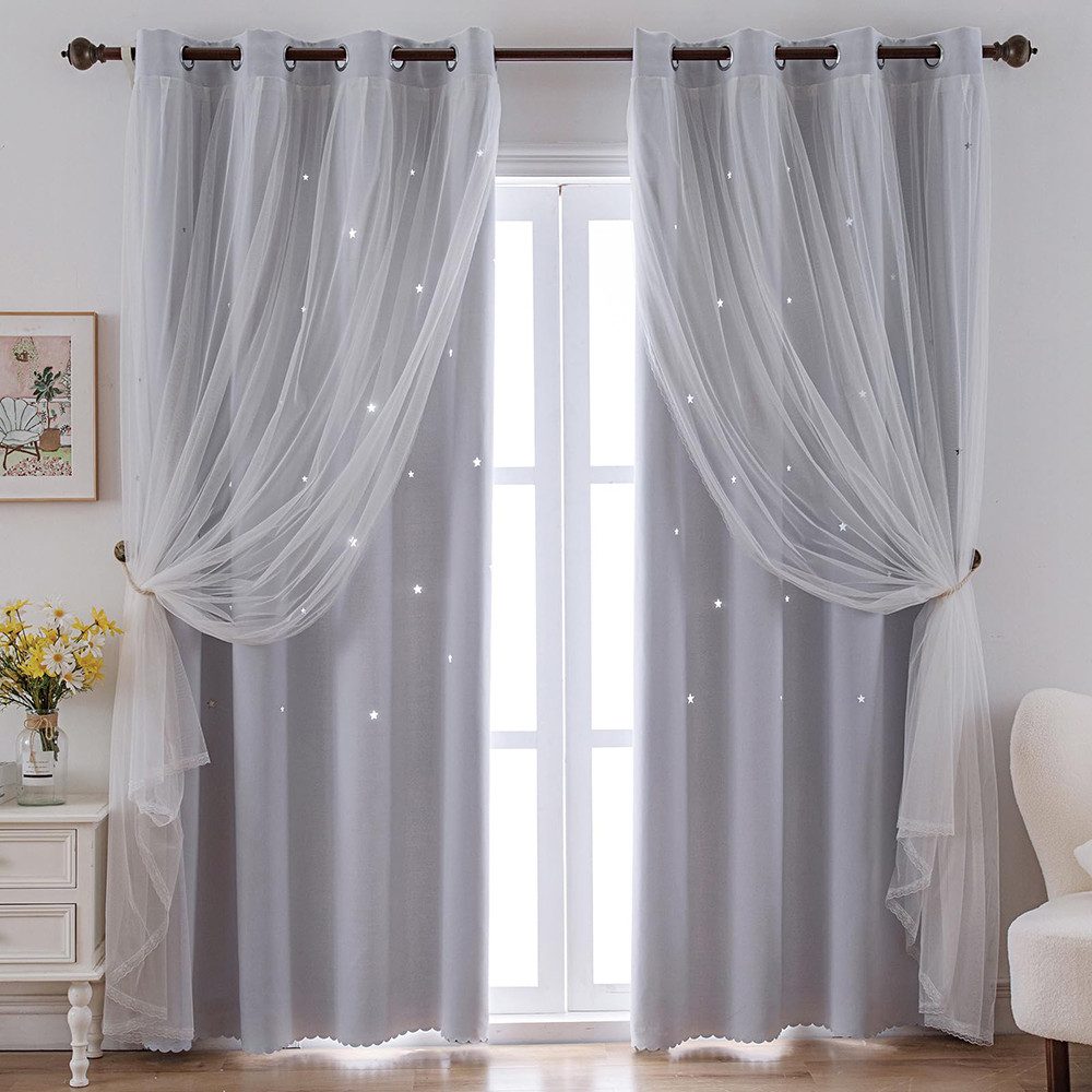 Die Verdunkelungsvorhänge bestehen aus leichter Gaze-Polyester, sind weich, elegant und fühlen sich glatt an. Sie dekorieren Ihr Zuhause perfekt und eignen sich ideal für Wohnzimmer, Schlafzimmer, Kinderzimmer und mehr.