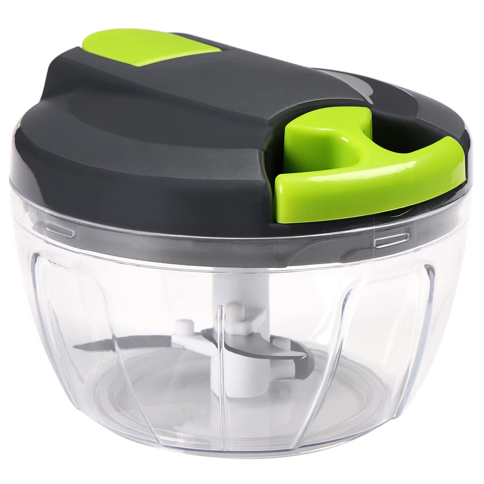 Das Zugseil besteht aus robustem Nylon mit guter Rückfederung. Der hochwertige, rutschfeste Boden sorgt dafür, dass der Zerkleinerer während der Benutzung stabil steht. Der transparente Behälter ermöglicht die einfache Kontrolle des Zerkleinerungsgrades, während die geschlossenen Klingen das Verletzungsrisiko verringern.