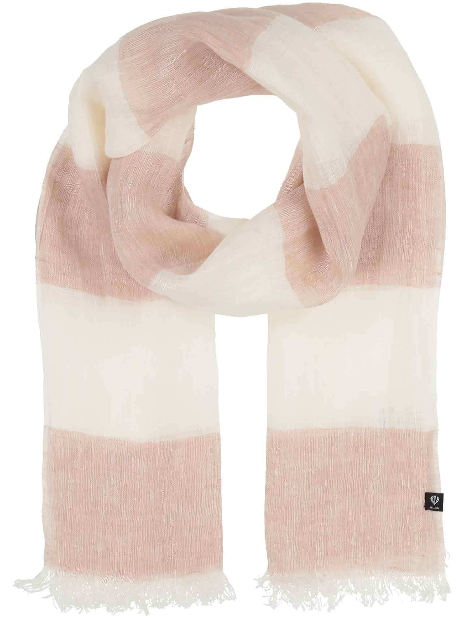 Sommer Pur: Der gestreifte Schal aus 100% Leinen überzeugt mit sommerlichen Farben, seinem leichten Material und unendlichen Kombinatiosmöglichkeiten. Mit seinen 50 x 180 cm ist der FRAAS Schal Ihr Begleiter für den Weg zum Büro, zum Schaufensterbummel oder an den Badesee.