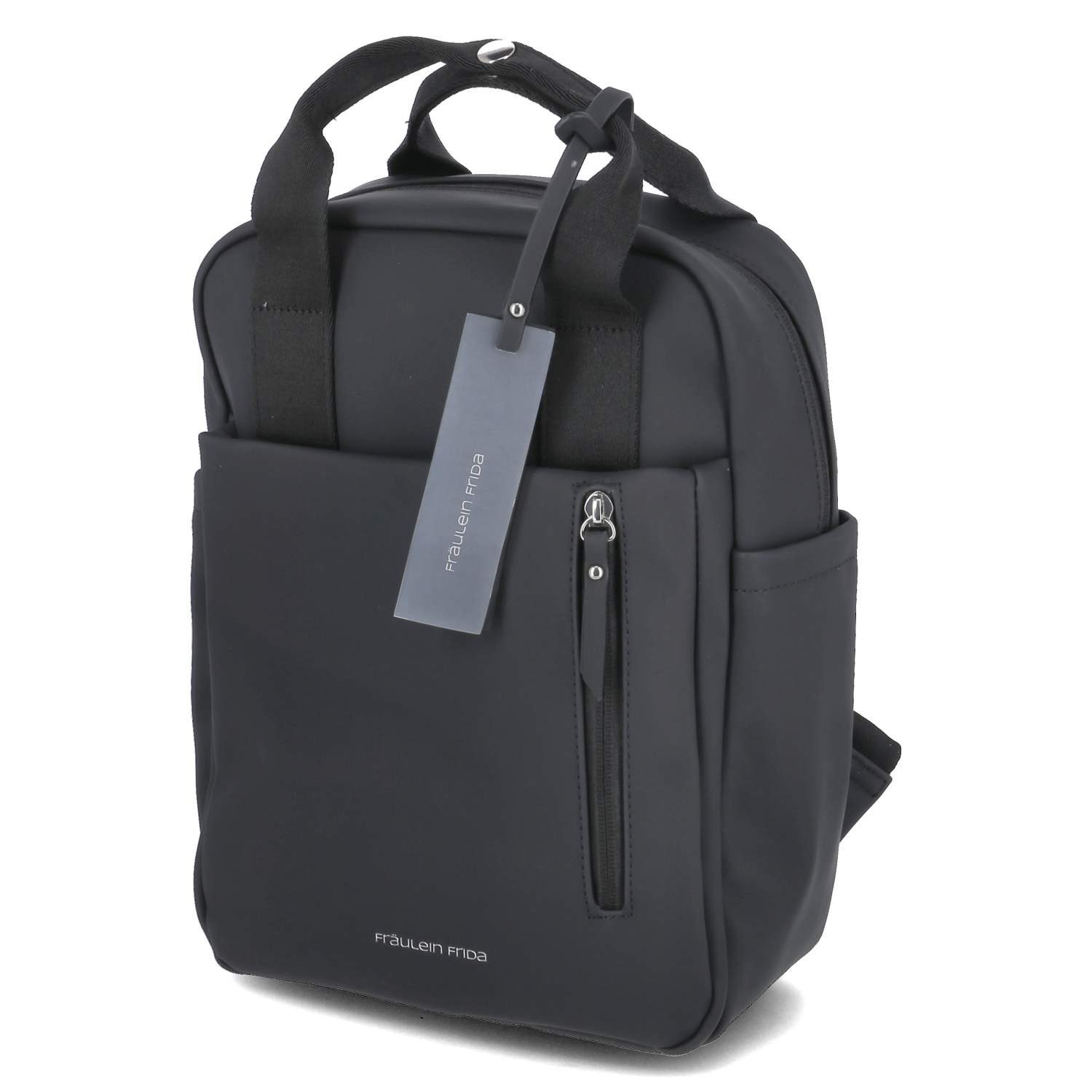 Der schwarze Rucksack Citypack aus wetterfestem Synthetik von Fräulein Frida überzeugt mit einer gelungenen Kombination aus Funktionalität und modernem Design. Die verstellbaren Tragegurte mit ca. 85 cm Длина ermöglichen eine individuelle Anpassung, während der verstärkte Boden für Stabilität sorgt. Zwei kleine Seitentaschen bieten zusätzlichen Stauraum für kleine Essentials, während die aufgesetzte Fronttasche mit Magnetverschluss schnellen Zugriff auf häufig genutzte Gegenstände ermöglicht.