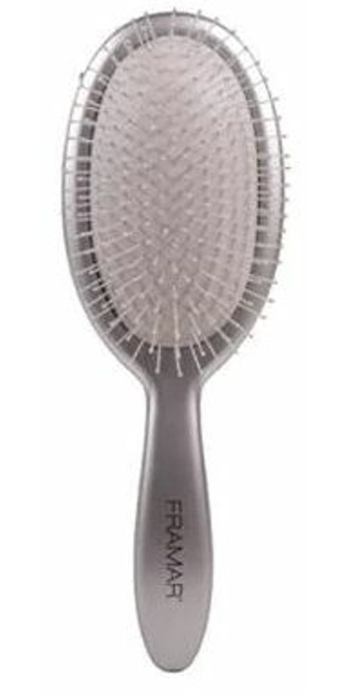 Framar Detangle Brush Metallic Silver Die Framar Detangle Brush Metallic Silver wurde für alle entwickelt, die eine effektive Lösung zum Entwirren von Haaren suchen. Diese Bürste zeichnet sich durch ihre flexiblen Borsten aus, die für ein schmerzfreies Erlebnis sorgen, egal ob Sie Ihr nasses oder trockenes Haar bürsten. Diese Bürste ist für alle Haartypen geeignet, von fein bis dick und von glatt bis lockig, und eignet sich auch für Extensions und Perücken. Dank des metallischen silbernen Designs vereint der Framar Detangle Brush Funktionalität mit einem stilvollen Erscheinungsbild. Die Verwendung dieser Bürste trägt dazu bei, das Haar glatt und geschmeidig zu halten und gleichzeitig das Ziehen und die Beschädigung des Haares zu minimieren. Eigenschaften Framar Detangle Brush * Haarbürste * Haare entwirren * Flexible Borsten * Für alle Haartypen geeignet * Metallischen silbernes Design * Hält das Haar glatt und geschmeidig Gebrauchsanweisung Auf nassem und trockenem Haar anwenden. Vermeiden Sie die Verwendung dieser Bürste in Kombination mit einem Haartrockner.