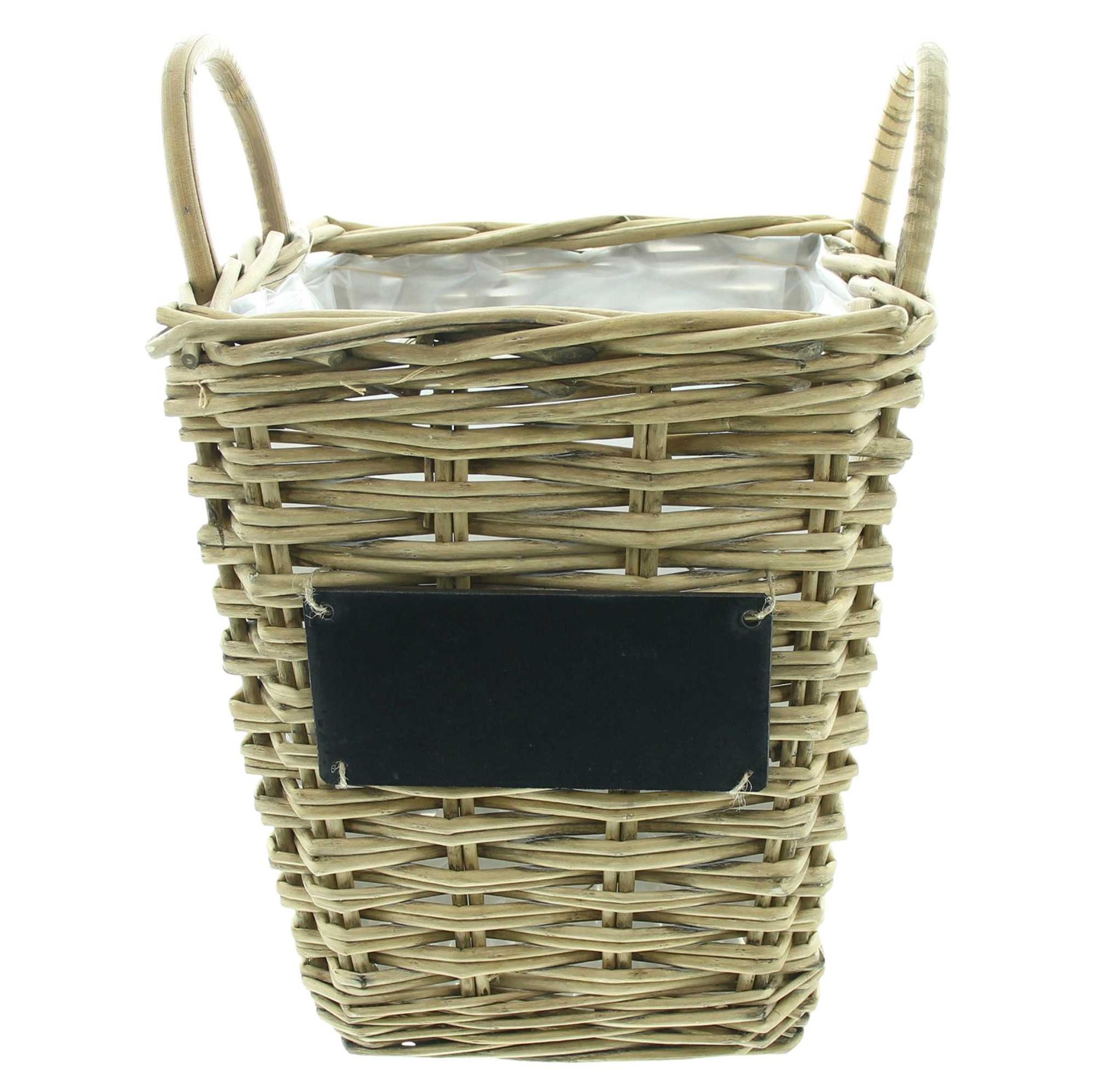 Ein praktisches Detail ist die kleine Tafel an der Vorderseite, die sich individuell beschriften lässt – ideal, um Kräuter, Blumen oder saisonale Pflanzen zu kennzeichnen. Dank der seitlichen Rattangriffe lässt sich der Weidenkorb mühelos transportieren und flexibel platzieren. Der Boden besteht aus MDF, was dem Korbgeflecht zusätzliche Stabilität verleiht.