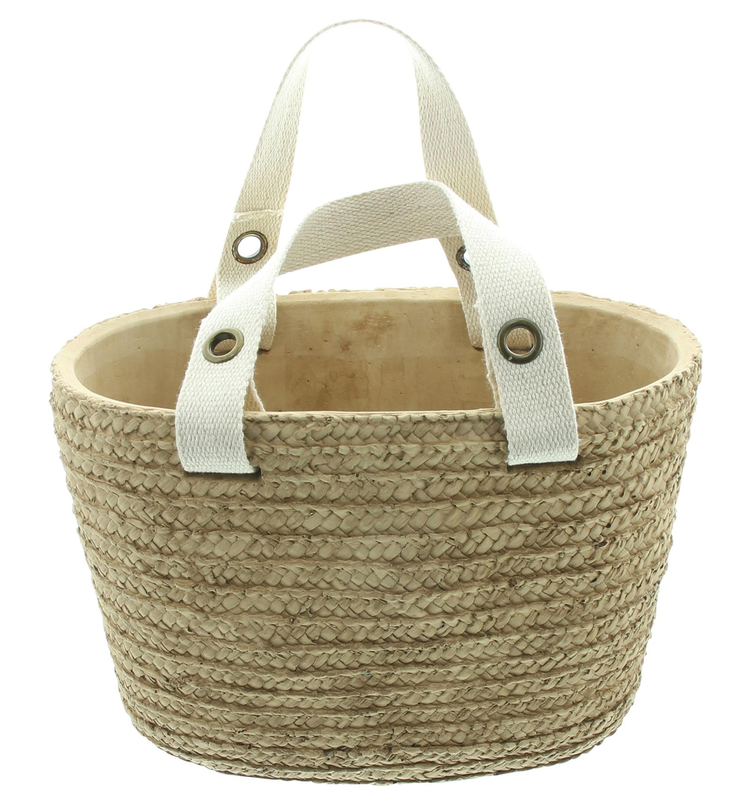 Gefertigt aus Zement in beige mit Textilschlaufen