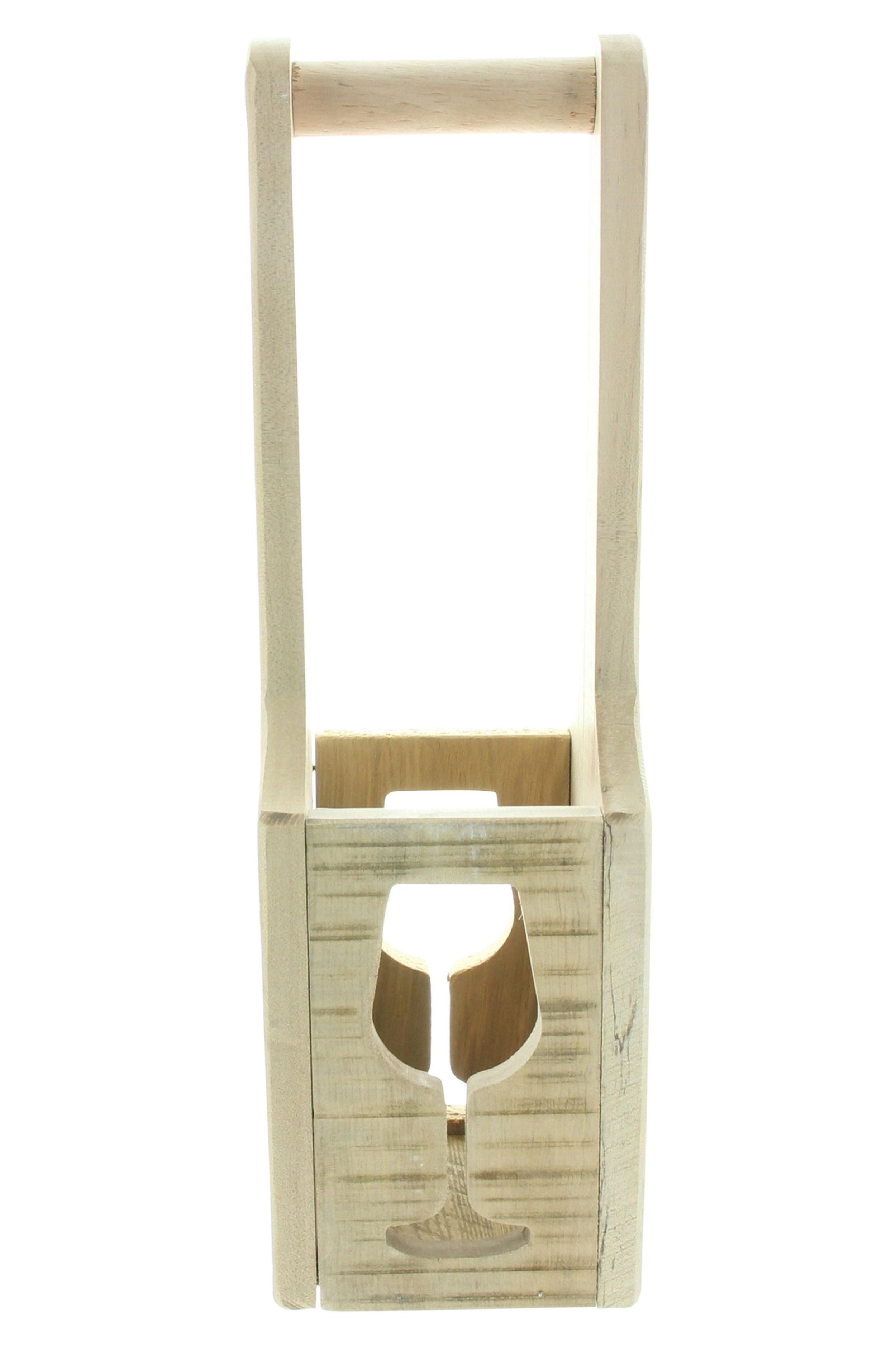 Mit seinen Maßen von ca. L 12 x B 12 x H 40 cm bietet dieser Flaschenträger Platz für 1 Flasche Wein, um diese stilvoll zu präsentieren - auf einer Theke, einem Regal oder einem. Perfekt geeignet auch als Geschenkverpackung für Weinliebhaber.
