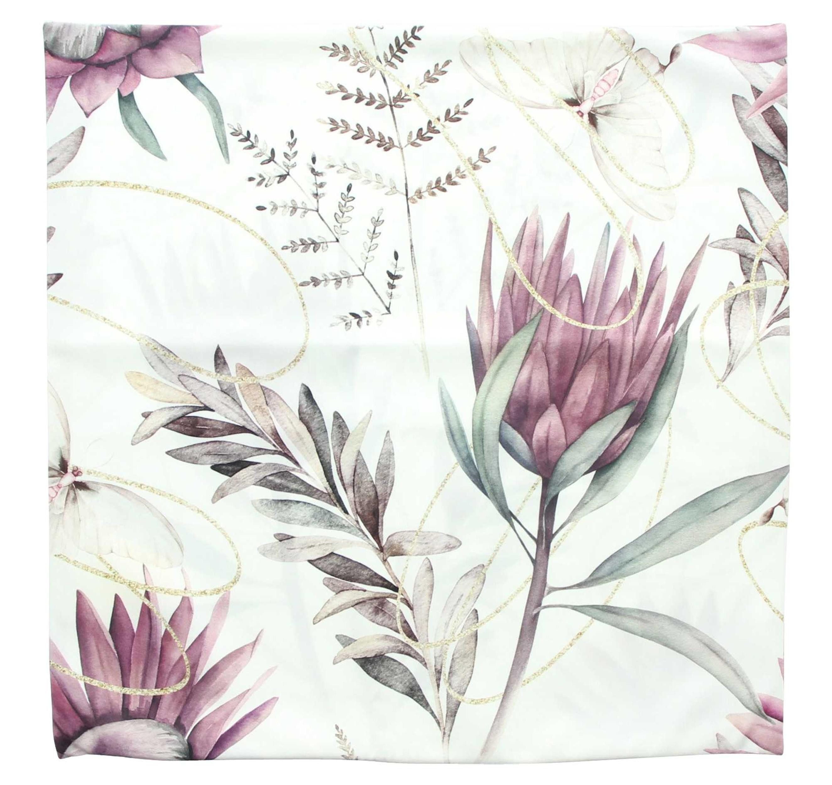 Kissenhülle "Blüte", 2er Set: Elegante Kissenhüllen (100% Polyester). Florale Motive auf samtig weißem Grundstoff. Optisches Highlight, schafft Wohlfühlatmosphäre. Langlebig, pflegeleicht, Reißverschluss für einfaches Wechseln.
