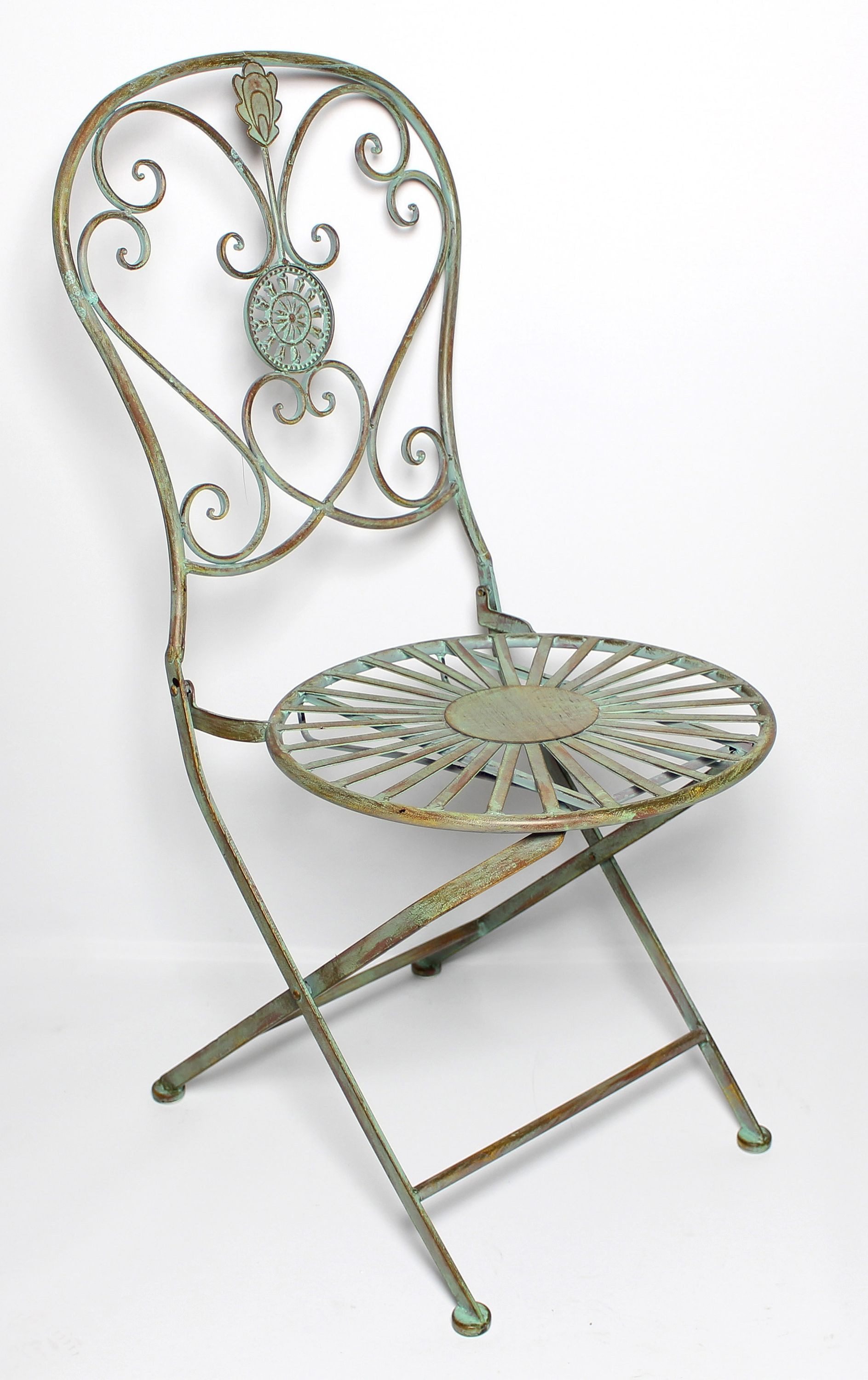 Der Metall-Stuhl "Pfauenauge" ist eine charmante Ergänzung für Ihre Terrasse, Ihren Garten oder Wintergarten. Mit seinem romantischen Antik-Look und den originellen Pfauendetails wird dieser Stuhl zum Blickfang in jedem Außen- oder Wohnbereich.