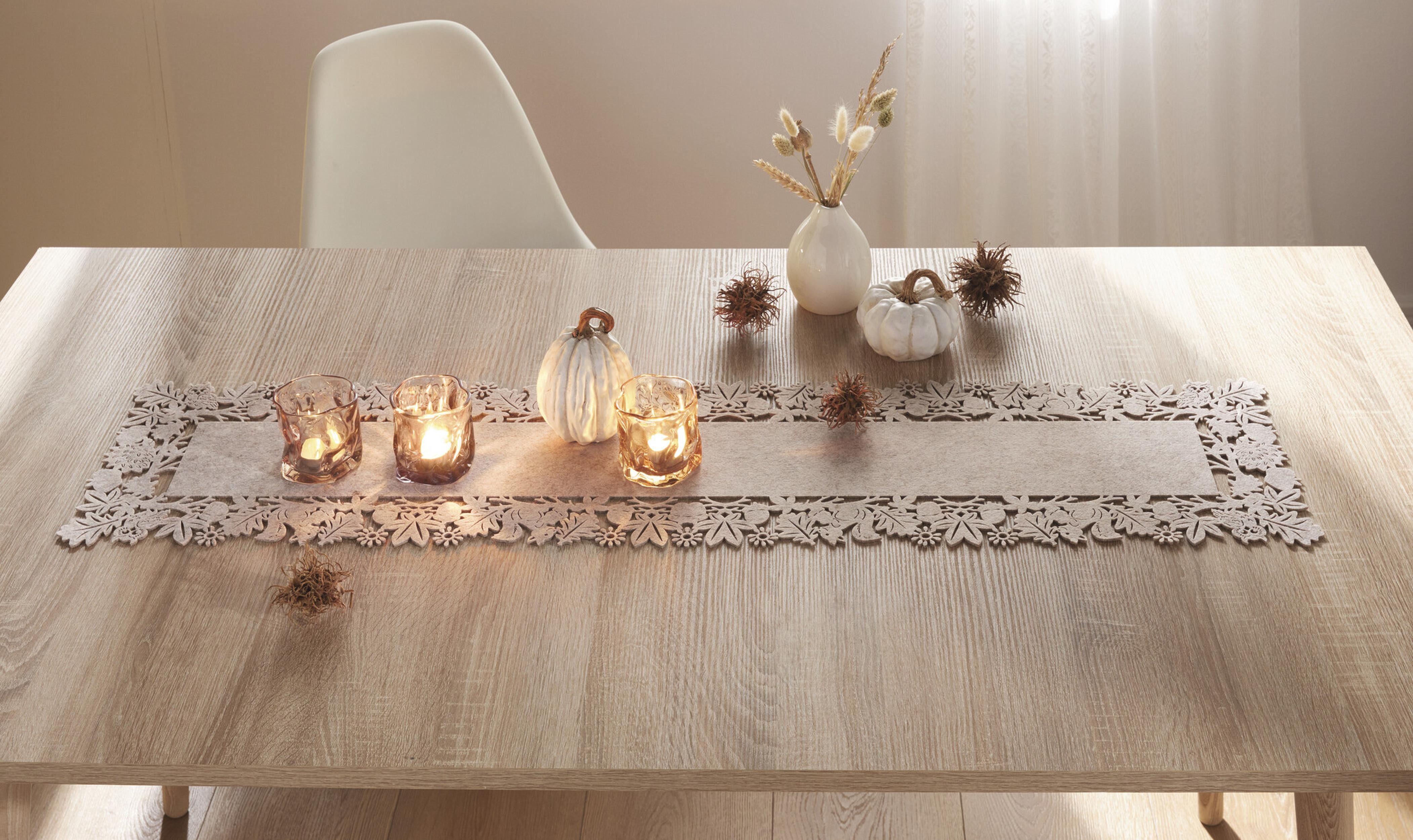 Herbstliche Gemütlichkeit für Ihren Tisch mit unserem Tischläufer "Herbstwald"! Aus Filz und 100% Polyester gefertigt (30 x 120 cm), ist dieser Tischläufer ein wunderschöner Blickfang. Sein natürliches Design bringt die Farben und die beruhigende Atmosphäre des Herbstwaldes in Ihr Zuhause.