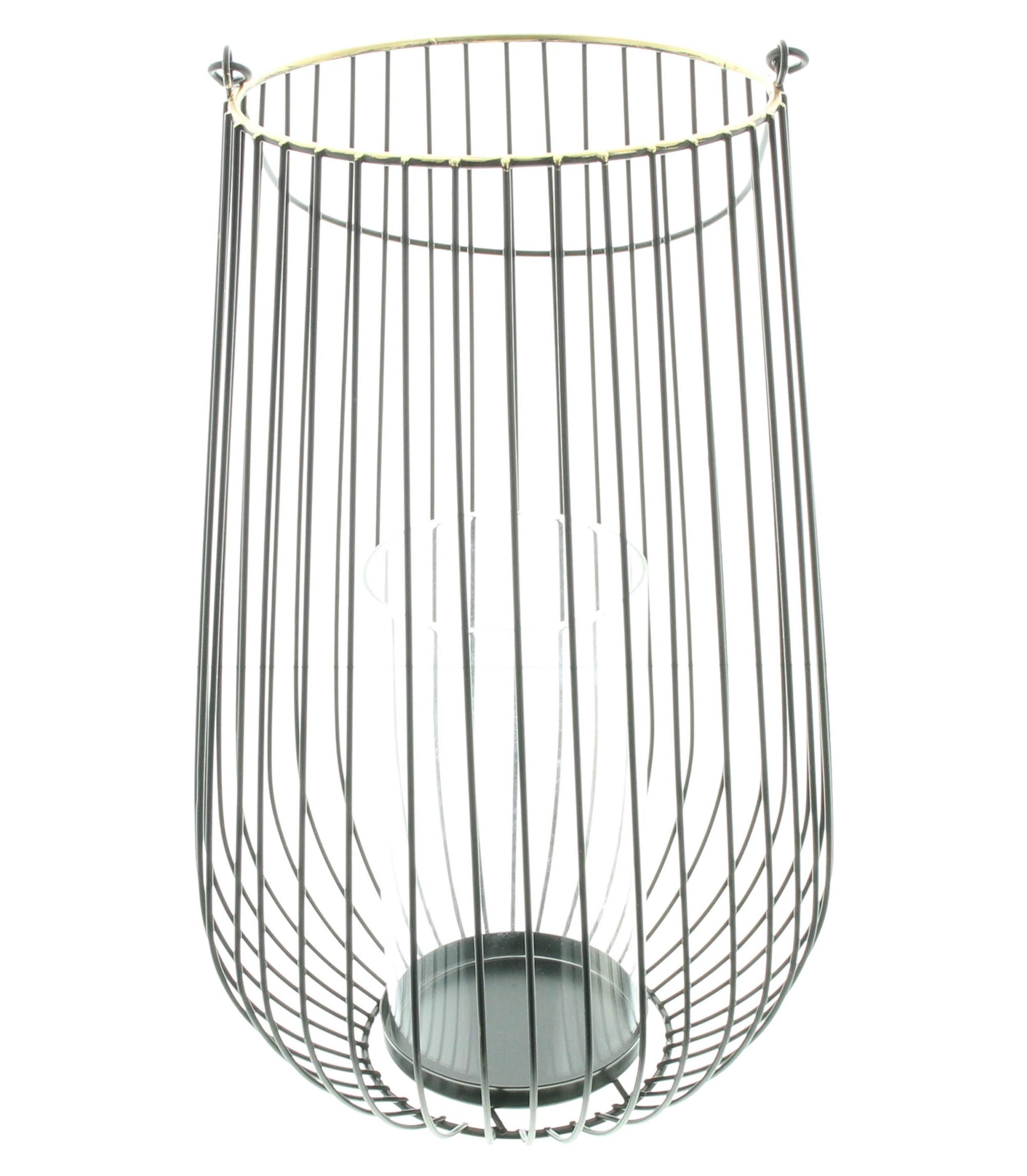 Windlicht "Retro" groß aus mattschwarz lackiertem Metall mit Goldrand und Glaswindlicht