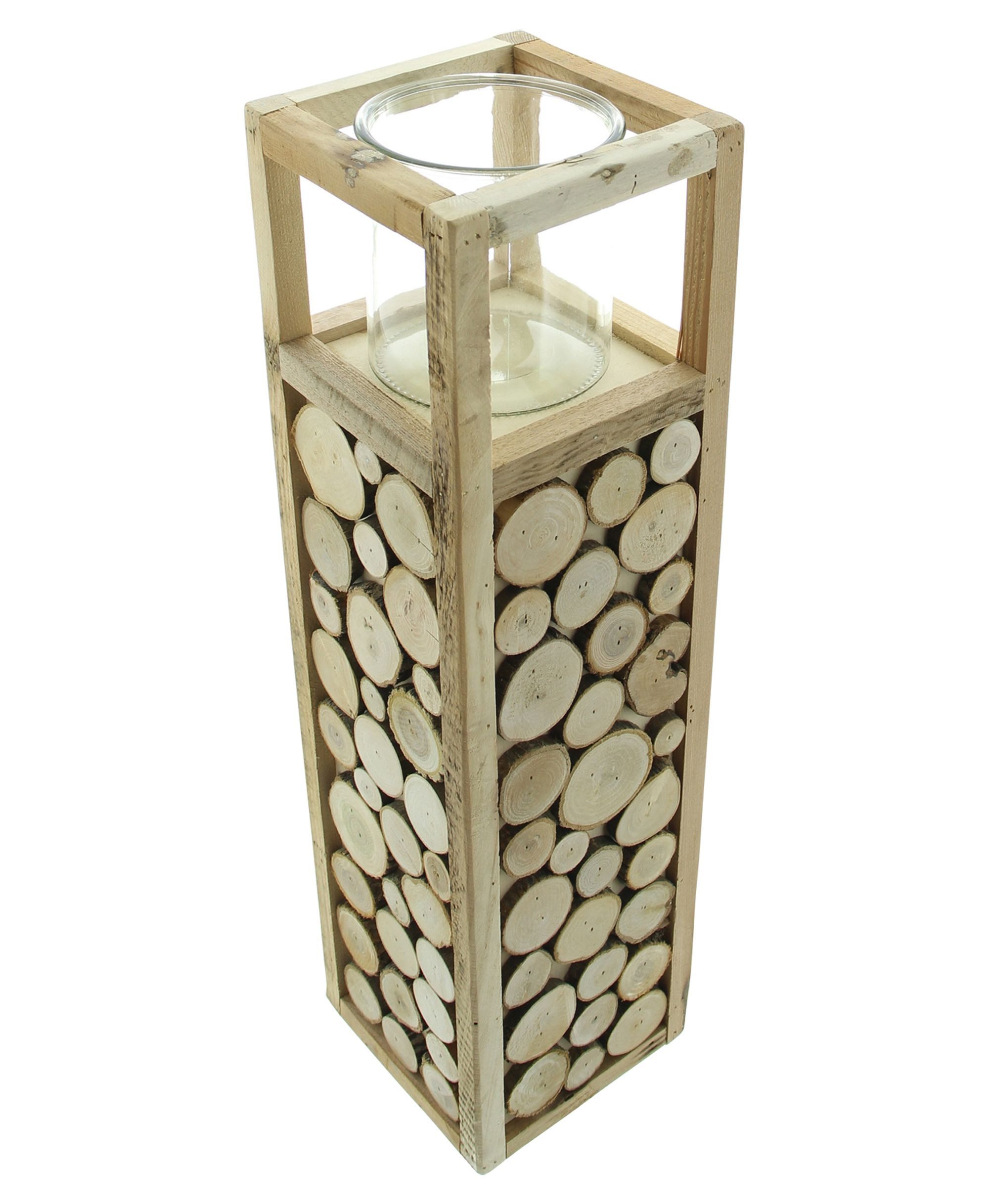 Setzen Sie stilvolle Akzente in Ihrem Zuhause mit der Windlichtsäule "Holzscheibchen" und genießen Sie eine warme, einladende Atmosphäre!