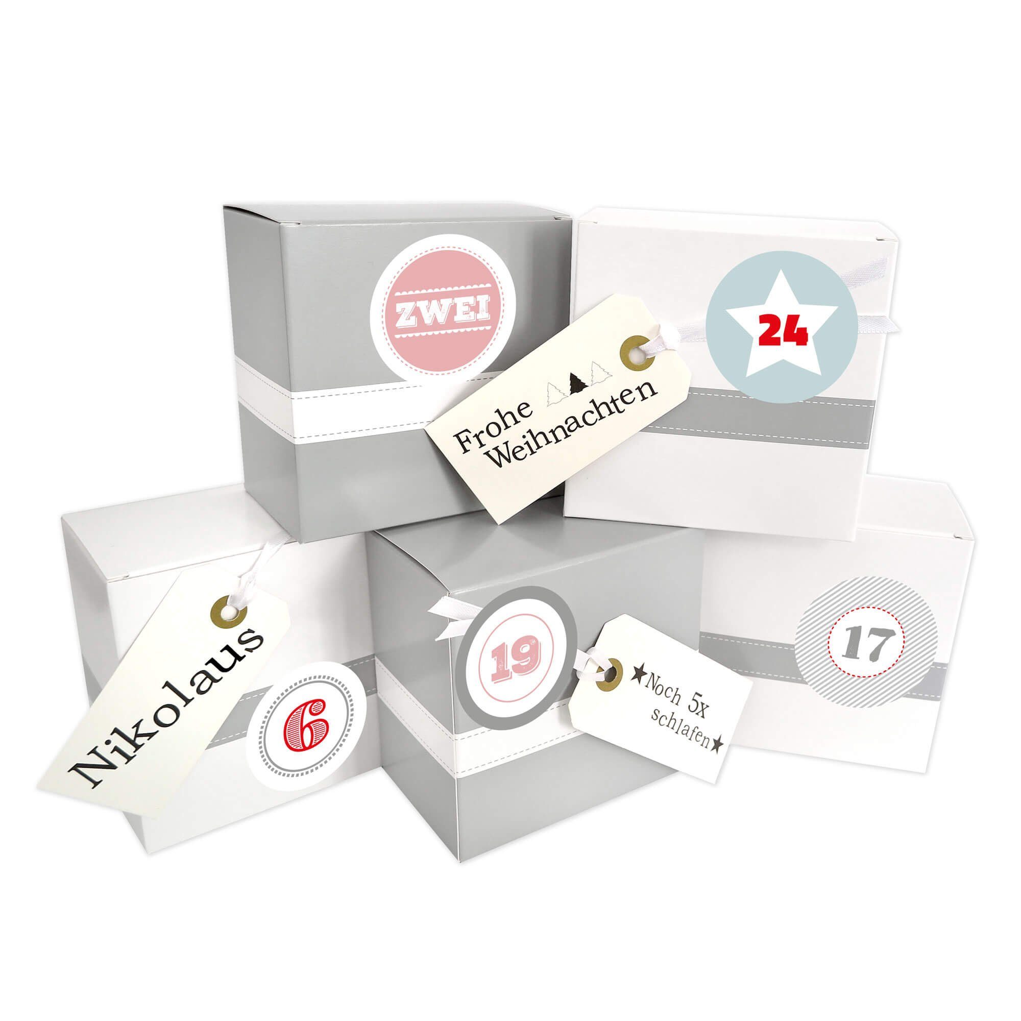 DIY-Adventskalender mit stabilen Pappschachteln 12x12x7cm aus 250 Gramm Papier zum selber basteln und befuellen