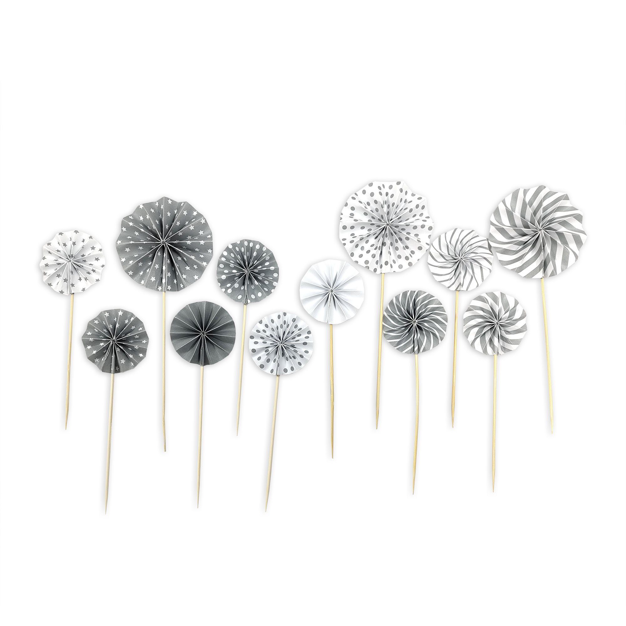 Die Deko Topper werden in einem Karton geliefert, damit diese beim Transport nicht beschädigt werden. Inhalt: 3 große Papierfächer 9 kleine Papierfächer