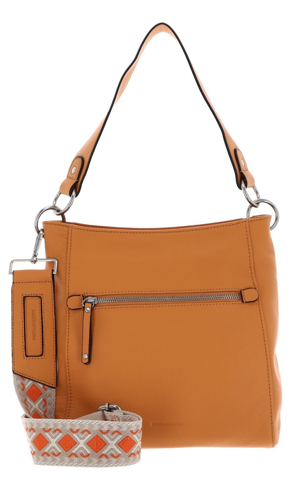 Bei dieser FREDsBRUDER Schultertasche ist besonders auf Hochwertigkeit und Verarbeitung gesetzt worden. Die Tasche mit ausgefallenem Schulterriemen entzückt mit edlem Design. Sehr angenehm zu tragen ist sie dank des abnehmbaren Schulterriemens, den Sie auf Ihre individuellen Bedürfnisse anpassen können. Das hochwertige Schmuckstück beweist im Hauptfach ein strukturiertes Innenleben mit übersichtlicher Ausstattung.