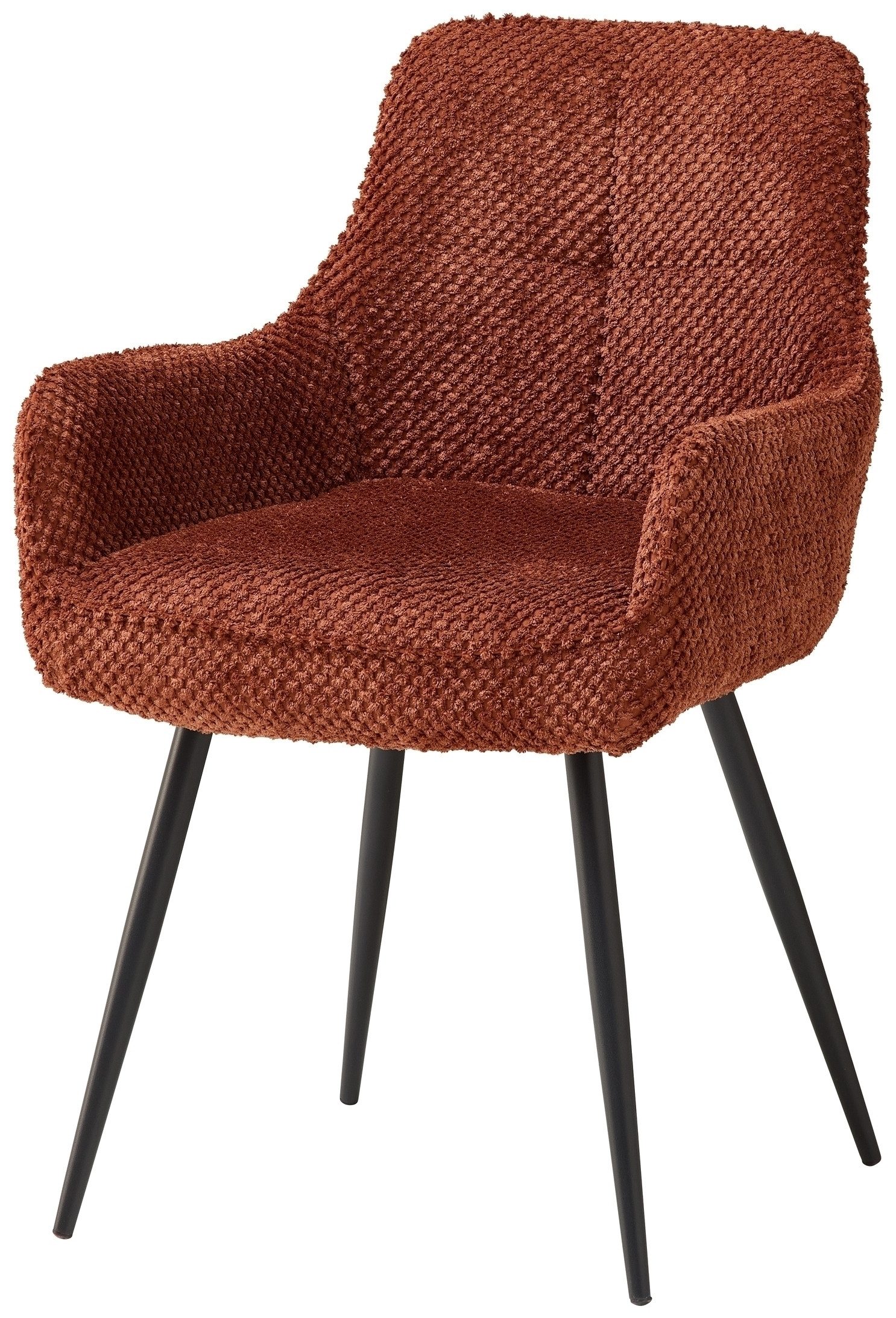 Der Armlehnstuhl Ava verbindet stilvolles Design mit hohem Sitzkomfort und ist die perfekte Wahl für moderne Wohnkonzepte. Mit seinen kompakten Maßen von B/H/T: 55/88/46 cm eignet sich Ava hervorragend für den Einsatz im Esszimmer, Wohnzimmer oder Homeoffice. Die ergonomische Sitzhöhe von 50 cm und die integrierten Armlehnen sorgen für bequemes Sitzen – auch über längere Zeiträume hinweg. Ein besonderes Merkmal des Stuhls ist die hochwertige Federkernpolsterung im Sitz, die nicht nur für exzellenten Komfort sorgt, sondern auch eine dauerhaft gute Formstabilität bietet. Diese Polstertechnik passt sich optimal dem Körper an und bietet eine angenehm federnde Sitzfläche, ideal für lange Mahlzeiten oder produktive Stunden am Schreibtisch. Der Bezug in einem eleganten Rostton besteht aus weichem Faserflor, der durch seine angenehme Haptik und samtige Optik begeistert. Die Materialzusammensetzung aus 95 % Polyester und 5 % Nylon macht den Stoff strapazierfähig, pflegeleicht und langlebig – perfekt für den täglichen Gebrauch. Das schwarze Metallgestell mit vier stabilen Beinen sorgt nicht nur für einen sicheren Stand, sondern unterstreicht durch sein klares Design den modernen Charakter des Stuhls. Die Kombination aus dem warmen Farbton des Bezugs und dem kühlen Schwarz des Gestells ergibt einen ansprechenden Kontrast, der sich harmonisch in verschiedenste Einrichtungsstile integrieren lässt. Ava wird im praktischen 2er Set geliefert und ist somit ideal, um stilvolle Sitzgruppen zu gestalten. Der Lieferzustand ist zerlegt, die Montage gelingt jedoch dank einer gut verständlichen Aufbauanleitung schnell und unkompliziert. Mit dem Armlehnstuhl Ava holen Sie sich zeitlose Eleganz, hohe Qualität und durchdachten Komfort in Ihr Zuhause – ein echtes Highlight für stilbewusste Einrichtungsliebhaber.