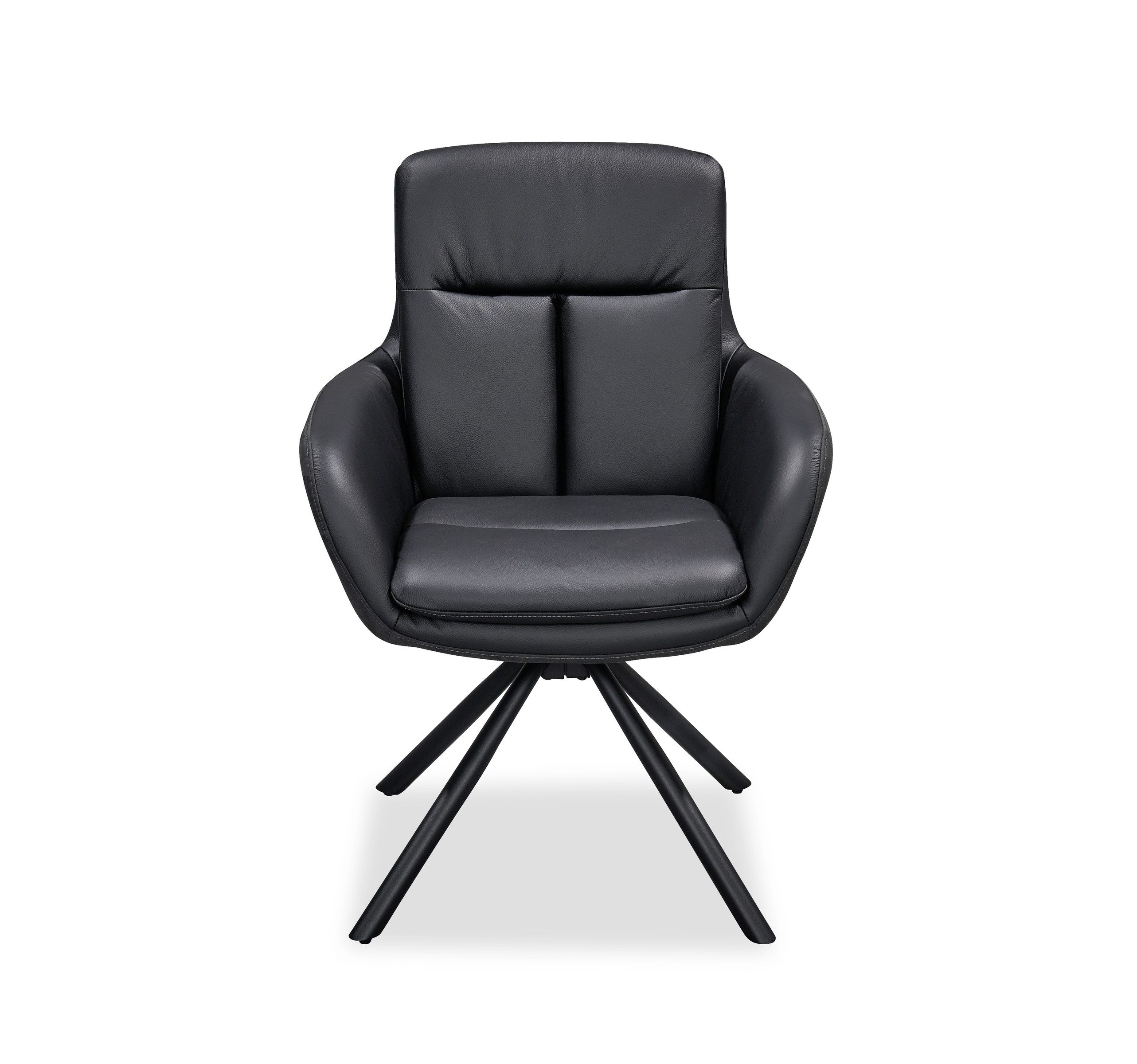 Der Armlehnstuhl Amy überzeugt mit einer harmonischen Kombination aus hochwertigem Design und durchdachter Funktionalität. Mit den Maßen B/H/T: 63/90/65 cm und einer Sitzhöhe von 51 cm bietet er optimalen Sitzkomfort für Esszimmer, Büro oder Wohnzimmer. Der Bezug des Stuhls besteht innen aus edlem Echtleder, das für ein luxuriöses, weiches Sitzgefühl sorgt. Außen ist der Stuhl mit pflegeleichter Mikrofaser bezogen, die in elegantem Schwarz gehalten ist und den Stuhl besonders langlebig und robust macht. Das schwarze, pulverbeschichtete Metallgestell mit vier stabilen Füßen unterstreicht die moderne Optik und garantiert einen sicheren Stand. Ein Highlight des Amy Armlehnstuhls ist die 360 Grad Drehfunktion mit Auto-Return: Die Sitzfläche lässt sich mühelos drehen und kehrt nach dem Gebrauch automatisch in die Ausgangsposition zurück. Diese Funktion ermöglicht maximale Bewegungsfreiheit und Komfort im Alltag – perfekt für flexible Nutzung am Arbeitsplatz oder gemütliche Runden am Esstisch. Geliefert wird das Set bestehend aus zwei Stühlen zerlegt, mit einer leicht verständlichen Montageanleitung, die einen schnellen Aufbau ermöglicht. So ist der Amy Armlehnstuhl schnell einsatzbereit und passt dank seines zeitlosen Designs in verschiedene Wohnstile. Das 2er Set Armlehnstühle Amy ist die ideale Wahl für alle, die auf Qualität, Komfort und modernes Design Wert legen. Die Kombination aus Echtleder und Mikrofaser macht den Stuhl sowohl edel als auch pflegeleicht, während das robuste Metallgestell für Stabilität und Langlebigkeit sorgt. So genießen Sie Komfort und Stil in einem Möbelstück – ob im Esszimmer, Büro oder Wohnzimmer.