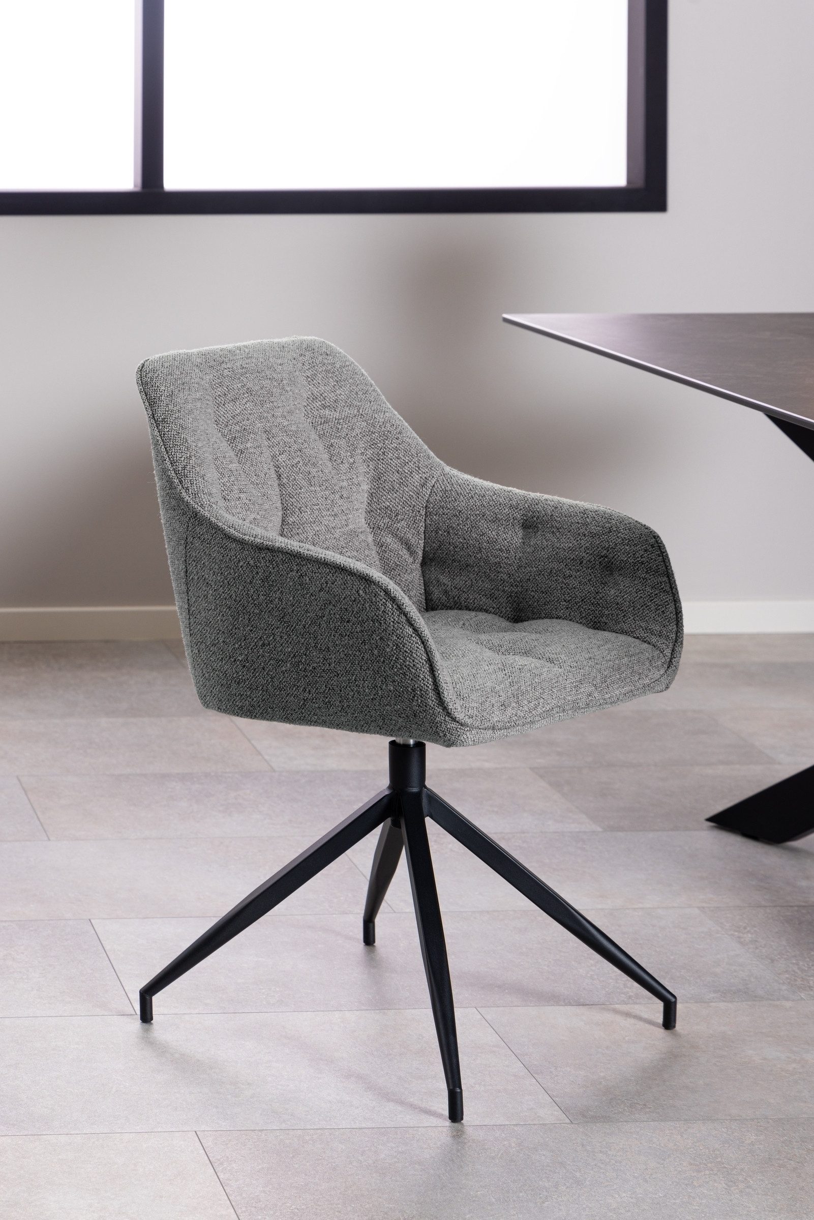 Der Brooke Armlehnstuhl verfügt über eine Drehfunktion und eine Rautenheftung im Bezug, die sein modernes Design unterstreichen. Die Rückenlehne unterstützt eine gesunde Sitzhaltun