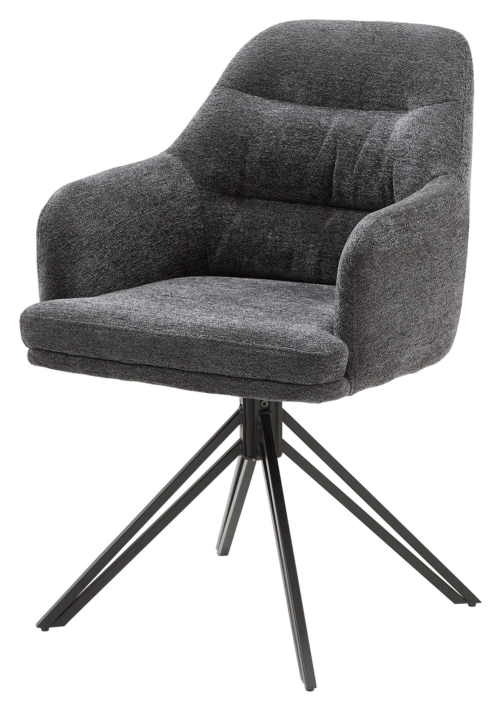 Der Armlehnstuhl "Emilia" ist die perfekte Wahl für alle, die stilvolles Design und hohen Komfort in ihr Zuhause bringen möchten. Geliefert im praktischen 2er Set, bietet "Emilia" nicht nur einen ästhetischen Mehrwert, sondern auch funktionale Vorteile. Mit den Maßen von B 57 cm / H 85 cm / T 59 cm und einer Sitzhöhe von 47 cm ist "Emilia" optimal dimensioniert, um sowohl am Esstisch als auch im Wohnzimmer oder Homeoffice eine gute Figur zu machen. Der anthrazitfarbene Mikrofaserbezug, der zu 100% aus Polyester besteht, verleiht dem Stuhl eine elegante und zeitlose Optik. Dieses Material ist zudem besonders pflegeleicht und strapazierfähig, was "Emilia" zu einem langlebigen Begleiter in Ihrem Alltag macht. Das schwarze Metallgestell im Spider-Design sorgt nicht nur für Stabilität, sondern auch für ein modernes und ansprechendes Erscheinungsbild. Die pulverbeschichtete Oberfläche des Gestells schützt vor Kratzern und Abnutzung, sodass der Stuhl auch bei intensiver Nutzung seine makellose Optik behält. Ein besonderes Highlight ist die 180 Grad Drehfunktion mit Auto-Return, die für zusätzlichen Komfort und Flexibilität sorgt. Diese Funktion ermöglicht es, sich bequem zu drehen und automatisch in die Ausgangsposition zurückzukehren, was den Stuhl besonders praktisch macht. "Emilia" wird zerlegt geliefert, lässt sich aber dank der klaren und detaillierten Aufbauanleitung schnell und unkompliziert montieren. So können Sie im Handumdrehen ein stilvolles und funktionales Möbelstück in Ihrem Zuhause genießen. Zusammengefasst bietet der Armlehnstuhl "Emilia" im 2er Set eine gelungene Kombination aus elegantem Design, hochwertigen Materialien und praktischen Funktionen. Ob am Esstisch, im Wohnzimmer oder im Homeoffice – "Emilia" überzeugt durch Komfort, Flexibilität und eine zeitlose Ästhetik, die in jedes moderne Wohnambiente passt. Genießen Sie stilvolles Sitzen mit dem Armlehnstuhl "Emilia".