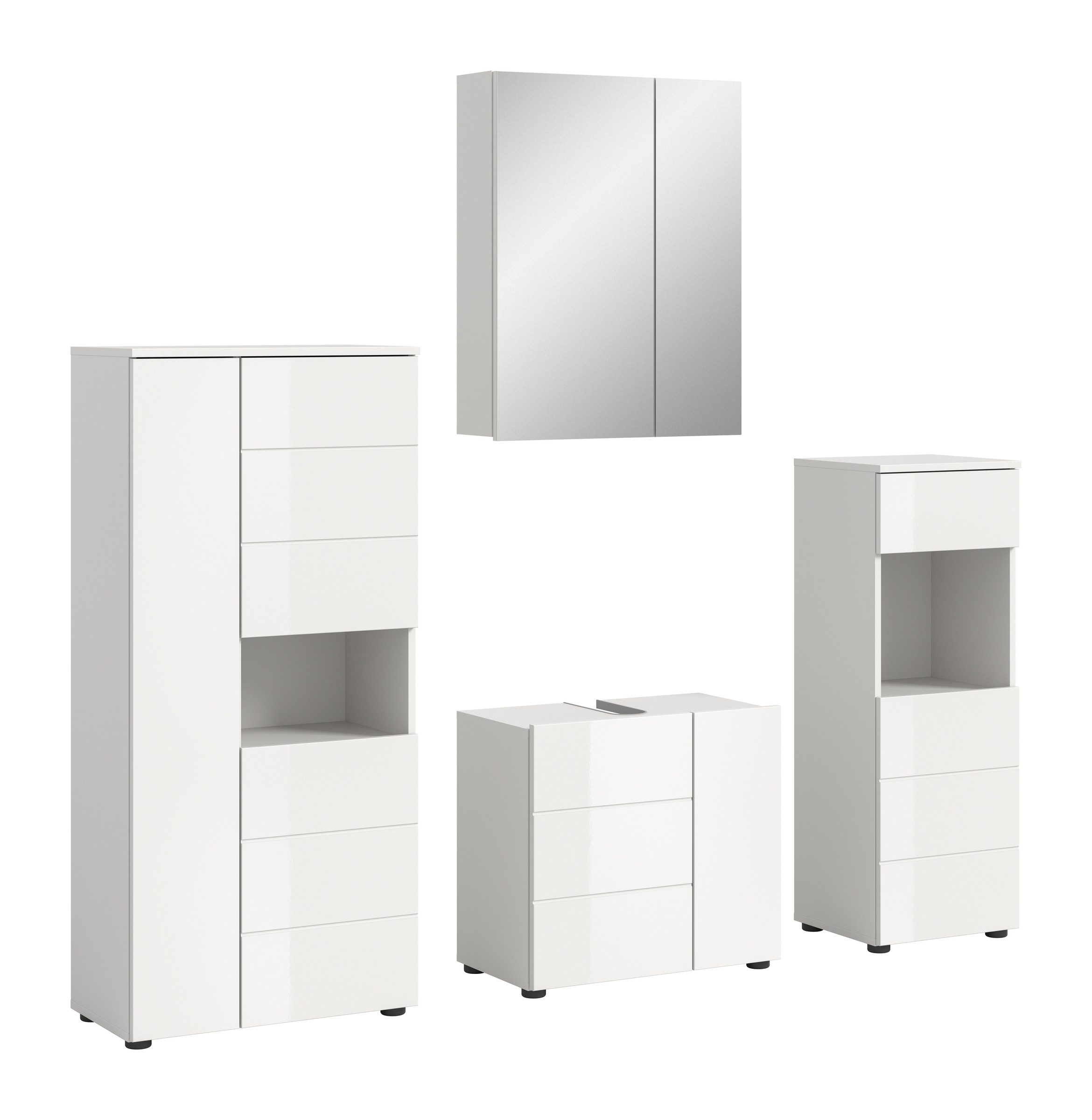 Lieferumfang | 1x Badschrank breit, 1x Waschbeckenunterschrank, 1x Spiegelschrank, 1x Badschrank schmal |