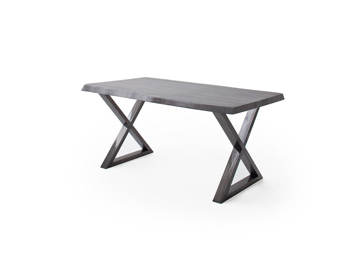 "Der Baumkantentisch ""Calabria"" vereint natürliche Schönheit mit modernem Design. Seine rechteckige Tischplatte aus massiver Akazie strahlt in einer grau lackierten Oberfläche, die durch eine geschickte Lackierung geschützt ist. Das markante Merkmal dieses Tisches ist seine Baumkante, die jedem Exemplar ein einzigartiges Aussehen verleiht. Das robuste Metallgestell in antik gewischt bietet nicht nur eine solide Basis, sondern fügt sich auch perfekt in das zeitgemäße Design ein. Die X-Form der Füße verleiht dem Tisch zusätzliche Stabilität und eine ansprechende Ästhetik. Mit Abmessungen von 200 cm Breite, 100 cm Tiefe und 79,5 cm Höhe bietet der ""Calabria"" genügend Platz für gesellige Runden im Wohnbereich. Dieser Tisch ist nicht nur ein funktionales Möbelstück, sondern auch ein Kunstwerk der Natur. Jedes Exemplar ist aufgrund der einzigartigen Holzmaserung und Baumkante ein Unikat. Mit einem FSC-Zertifikat versehen, können Sie sicher sein, dass das Holz aus nachhaltiger Forstwirtschaft stammt. Der ""Calabria"" wird zerlegt geliefert, um eine einfache Montage zu ermöglichen. Seine stabile Konstruktion und maximale Belastbarkeit von 100 kg machen ihn zu einem zuverlässigen Begleiter für viele Jahre. Perfekt für Liebhaber moderner, natürlicher Einrichtungsstile."