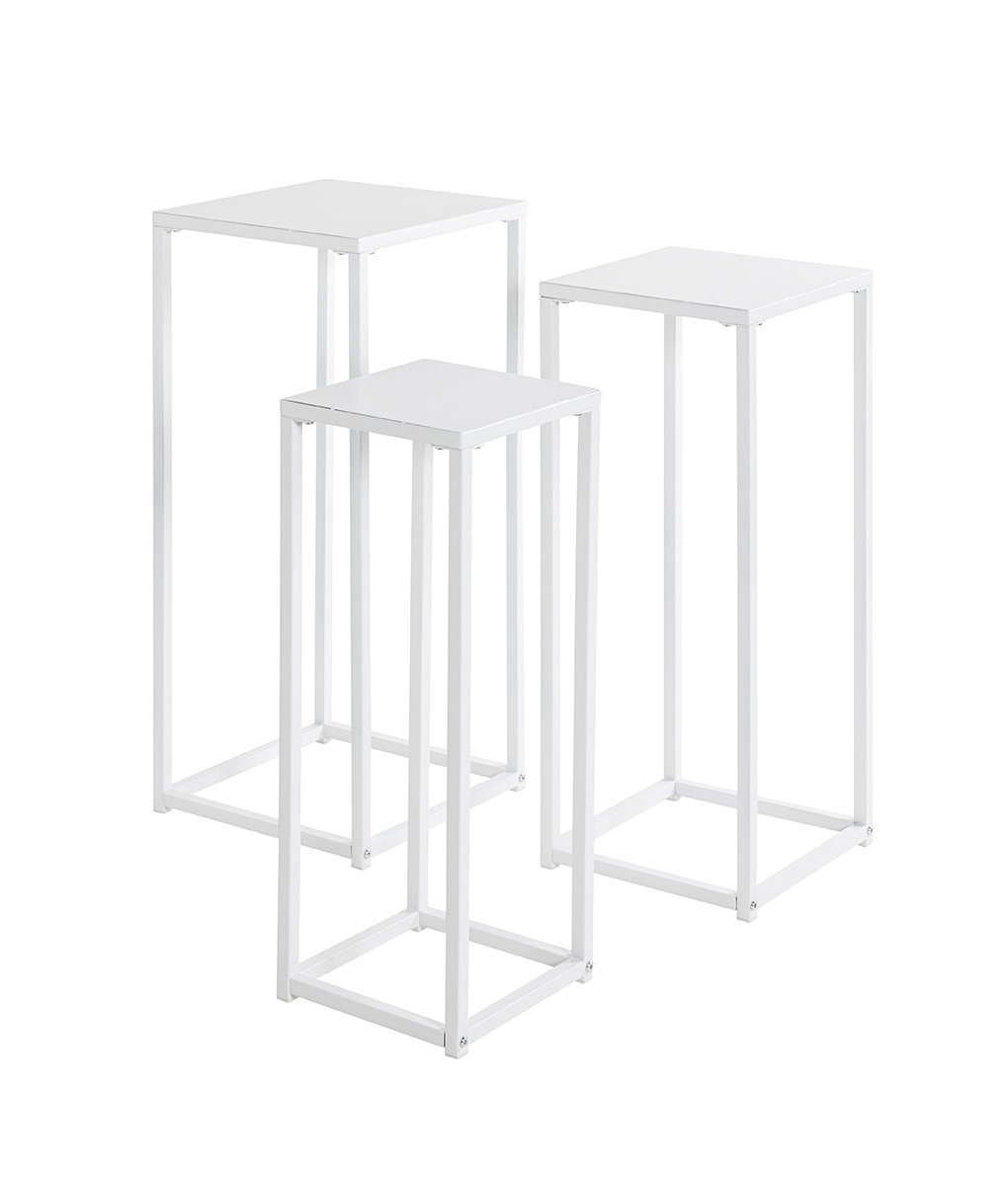 Mit seinem modernen Stil und den besonderen Merkmalen wie dem pulverbeschichteten Stahlrohr und den weißen Metallablagen ist der Blumentisch '25359' ein echter Blickfang in jedem Raum. Gönnen Sie sich dieses stilvolle Möbelstück und bringen Sie Ihre Pflanzen und Dekorationen gekonnt zur Geltung! (3er-Set)
