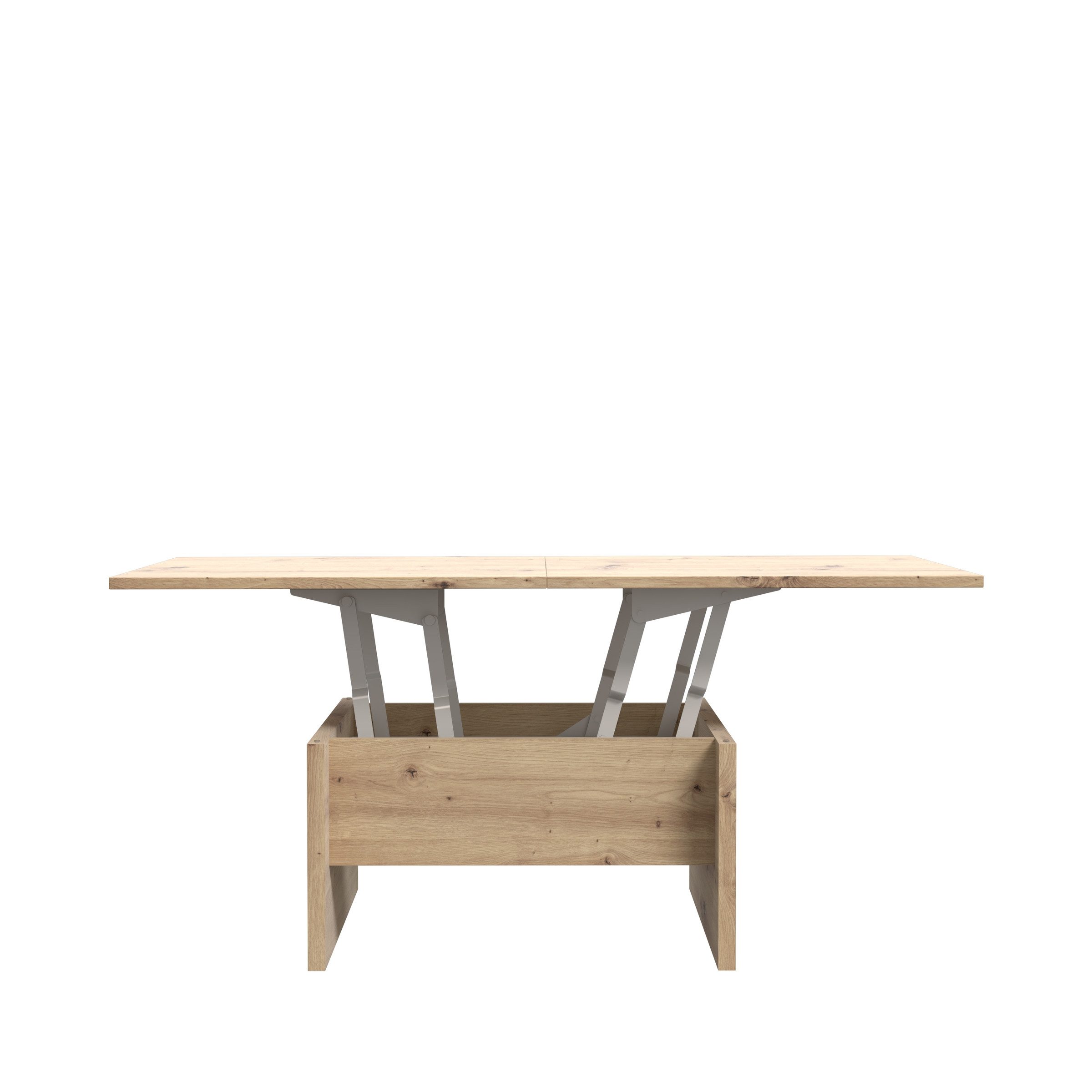 Der Couchtisch BELEMIR ist eine perfekte Kombination aus modernem Design und praktischer Funktionalität, ideal für jedes Wohnzimmer. In der stilvollen Farbe Artisan Eiche verleiht er Ihrem Raum eine warme, einladende Atmosphäre. Mit den kompakten Abmessungen von 80 cm Breite, 47 cm Höhe und 80 cm Tiefe (B/H/T) bietet er ausreichend Platz für Ihre Lieblingsdeko, Snacks oder Getränke. Dieser Tisch ist nicht nur ein elegantes Möbelstück, sondern auch äußerst vielseitig. Die ausklappbare Tischplatte ermöglicht eine maximale Длина von 160 cm und eine Höhe von bis zu 73,2 cm, wodurch er sich optimal an verschiedene Bedürfnisse anpassen lässt. Ob für gemütliche Filmabende mit Freunden oder als zusätzlicher Platz für Snacks bei Feiern – der BELEMIR ist stets zur Stelle. Hergestellt aus hochwertiger Spanplatte mit einer 22 mm starken Tischplatte und 32 mm starken Seitenteilen, garantiert dieser Couchtisch Stabilität und Langlebigkeit. Die Tischplatte ist mit einer strapazierfähigen Folie beschichtet, die für ein ansprechendes Finish sorgt und gleichzeitig pflegeleicht ist. Die Kanten sind mit Papierkante und ABS-Kante versehen, was die Langlebigkeit und den Schutz vor Stößen erhöht. Die eleganten schwarzen Kunststofffüße runden das moderne Design ab und sorgen für einen stabilen Stand, während das Gesamtgewicht von 50 kg zusätzliche Robustheit bietet. Der BELEMIR hat eine maximale Belastbarkeit von 40 kg auf der Tischplatte, sodass Sie sich darauf verlassen können, dass er Ihre alltäglichen Bedürfnisse mühelos erfüllt. Der Couchtisch wird zerlegt geliefert und enthält eine leicht verständliche Aufbauanleitung, sodass der Zusammenbau problemlos gelingt. Mit seinem modernen Look und der funktionalen Vielseitigkeit ist der BELEMIR nicht nur ein Möbelstück, sondern ein stilvolles Highlight in Ihrem Zuhause. Machen Sie es sich gemütlich und genießen Sie die Zeit mit Familie und Freunden an diesem attraktiven Couchtisch!